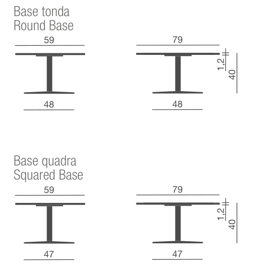 - round or square bases made by white or black painted steel