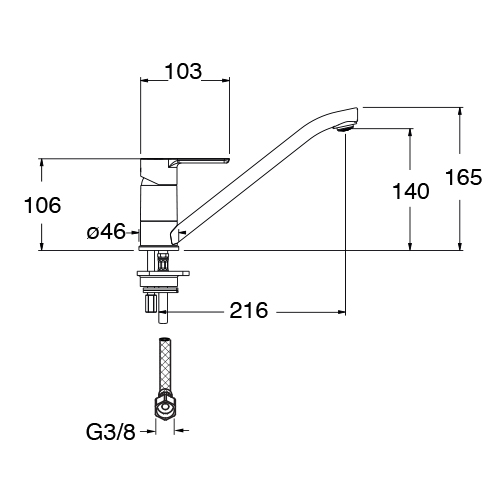 Miscelatore monocomando cucina, bocca orientabile, monoforo da piano, con miscelazione meccanica frontale, H. 106 mm