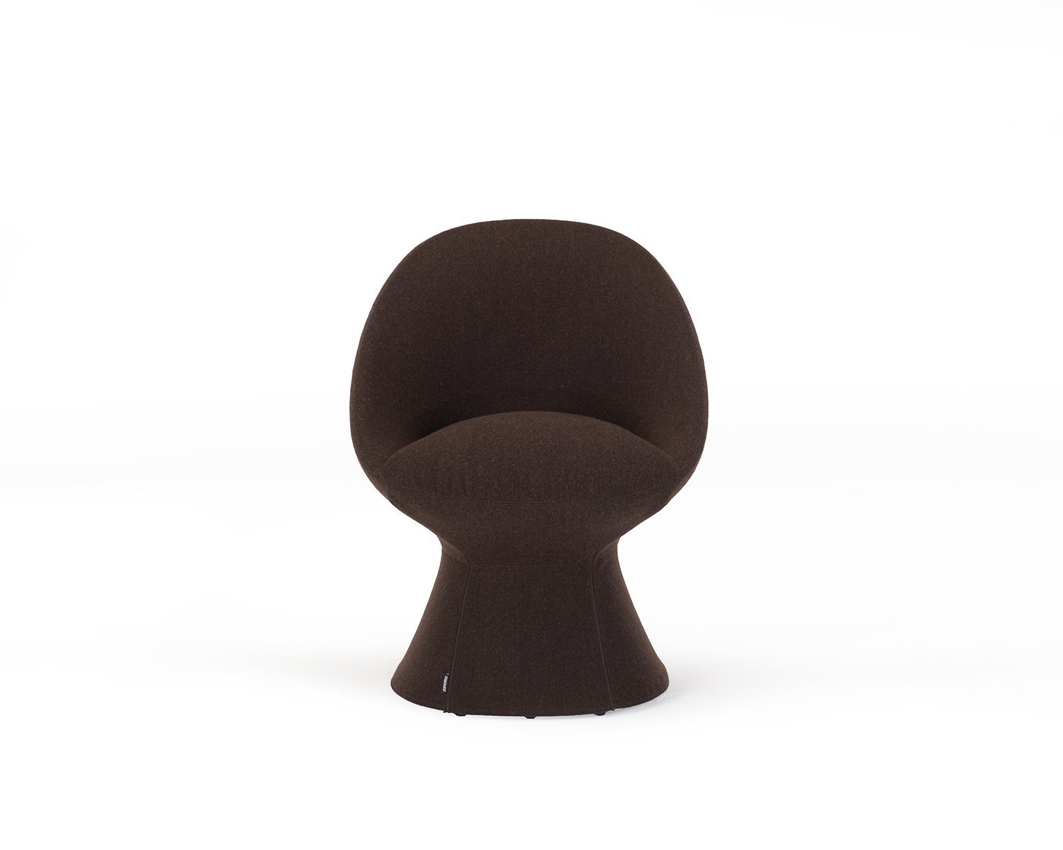 Fully upholstered in fabric, the Giuno armchair offers great comfort thanks to its enveloping seat with a hint of an armrest, making it particularly comfortable as a dining chair. The version with a rotating base adds an element of practicality without compromising the purity of form.