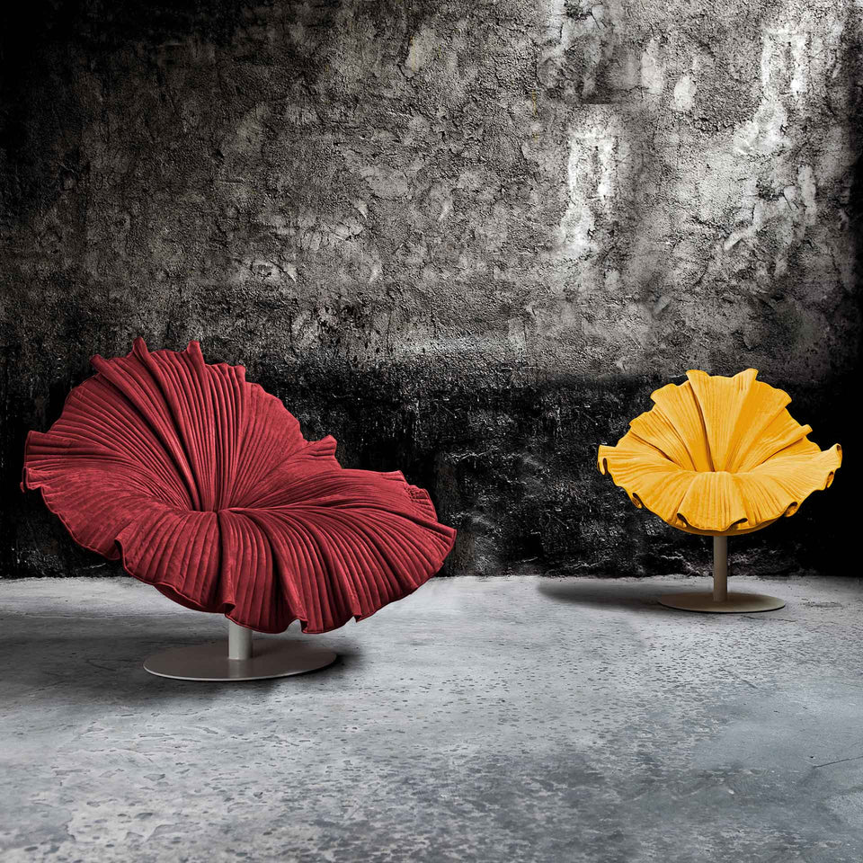 Like buds that bloom to a beautiful and colorful bouquet, the Bloomchair is anchored and assembled from the center with a hundredelegant fine folds made to look like large petals.