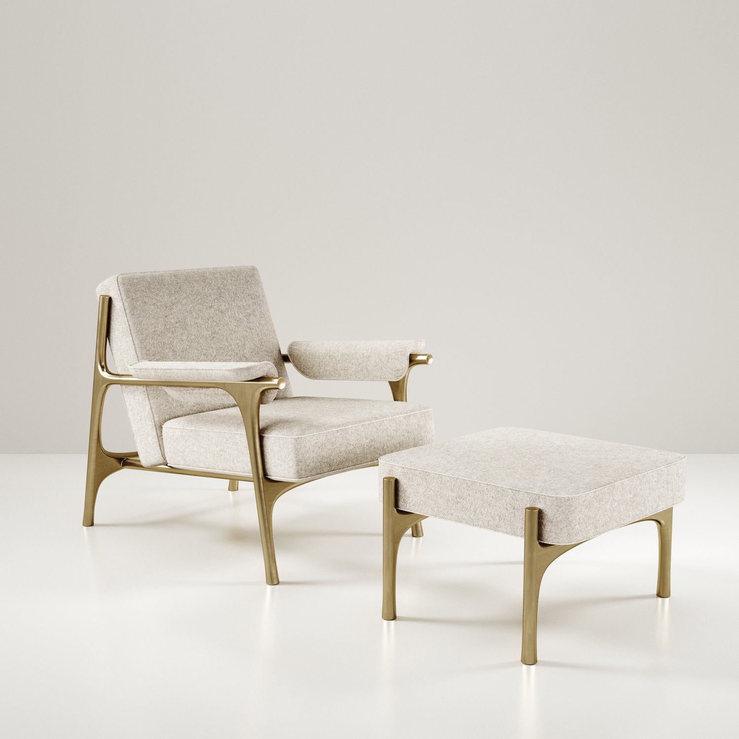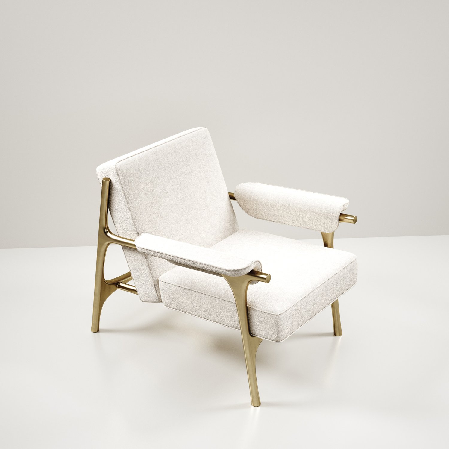 The Ramo armchair by R & Y Augousti is an elegant and versatile piece. The upholstered piece in Pierre Frey fabrics provide comfort while retaining a unique aesthetic with the bronze-patina brass frame and details. Part of the Ramo Seating Series.