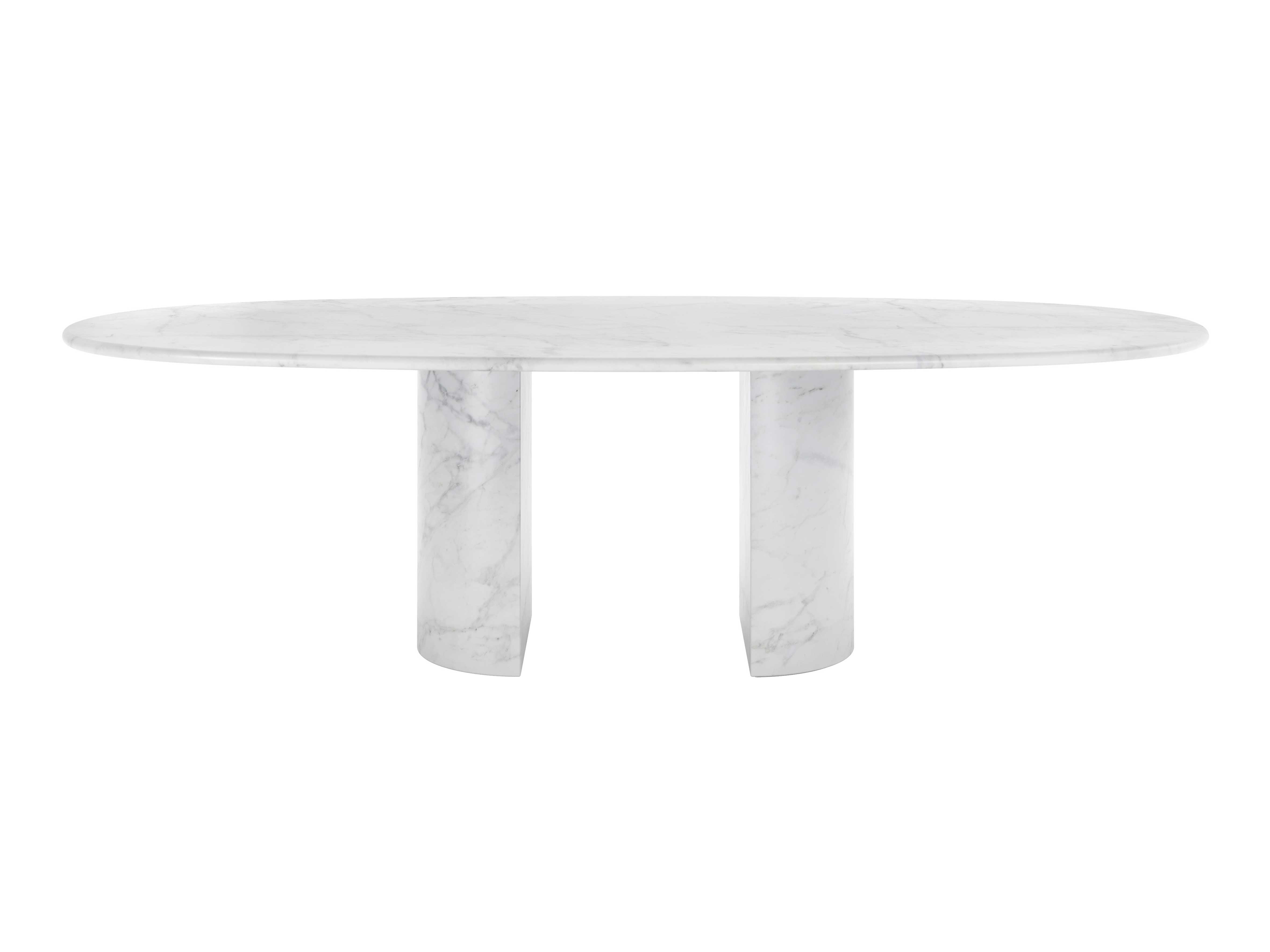 The Dolmen has a majestic marble top, 3 cm thick, which rests atop two semi-circular bases made of the same material, further enhancing the support surface and ensuring a remarkably tactile experience.
