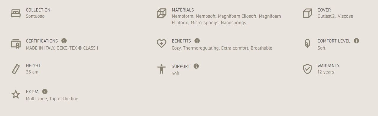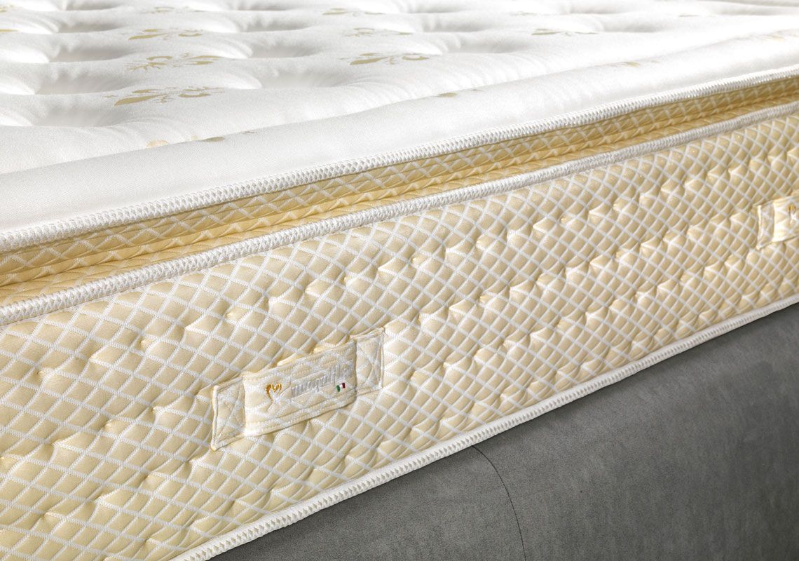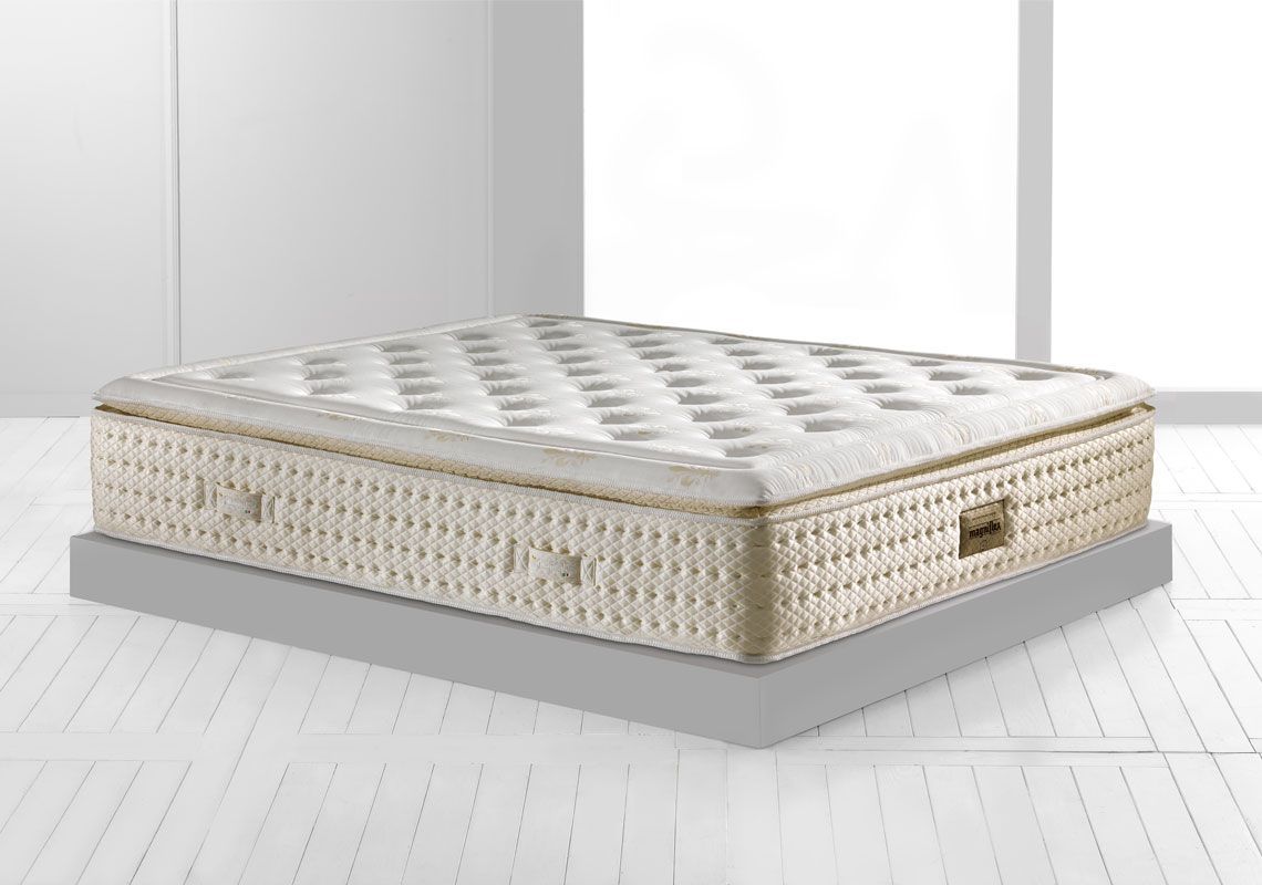 Sontuoso Oro 14 embodies all the wealth of a handcrafted tradition and combines it with the high quality materials and the use of the most advanced manufacturing technologies. The art of knowing how to help people sleep in style is authenticated by the elegant signature design and provides a soft support in 35 cm of height.