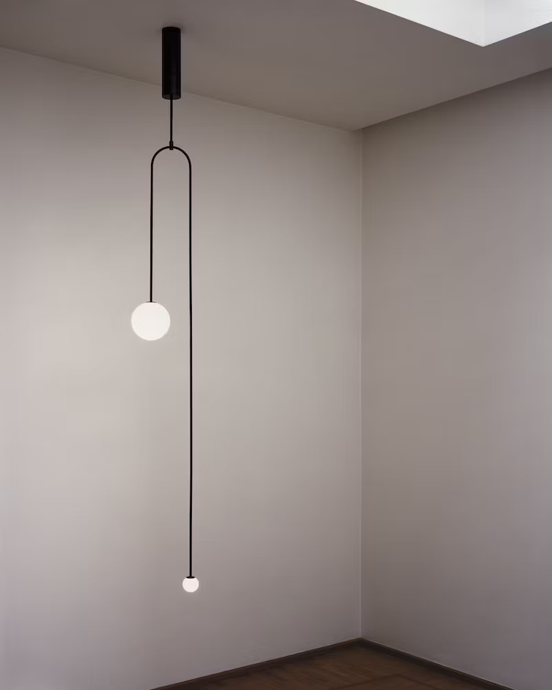 This collection of fixtures uses the standard unit of the light tube as a measure. Through the alternation of 1m and 0.5m modules, it creates a rhythmic language of recording space. The designs evolve as a parallel progression of rods, combining five variations of standard linear LED bulbs and metal tubes of the same diameter. With this series, Michael Anastassiades expands the compositional possibilities of some of the most structural elements of lighting, engaging the viewer in a rigorous yet playful exercise in measuring.
