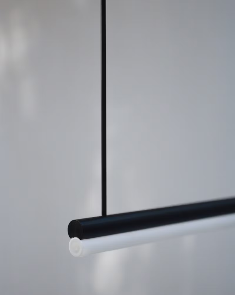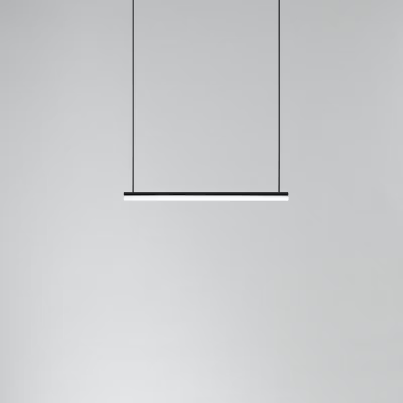 This collection of fixtures uses the standard unit of the light tube as a measure. Through the alternation of 1m and 0.5m modules, it creates a rhythmic language of recording space. The designs evolve as a parallel progression of rods, combining five variations of standard linear LED bulbs and metal tubes of the same diameter. With this series, Michael Anastassiades expands the compositional possibilities of some of the most structural elements of lighting, engaging the viewer in a rigorous yet playful exercise in measuring.