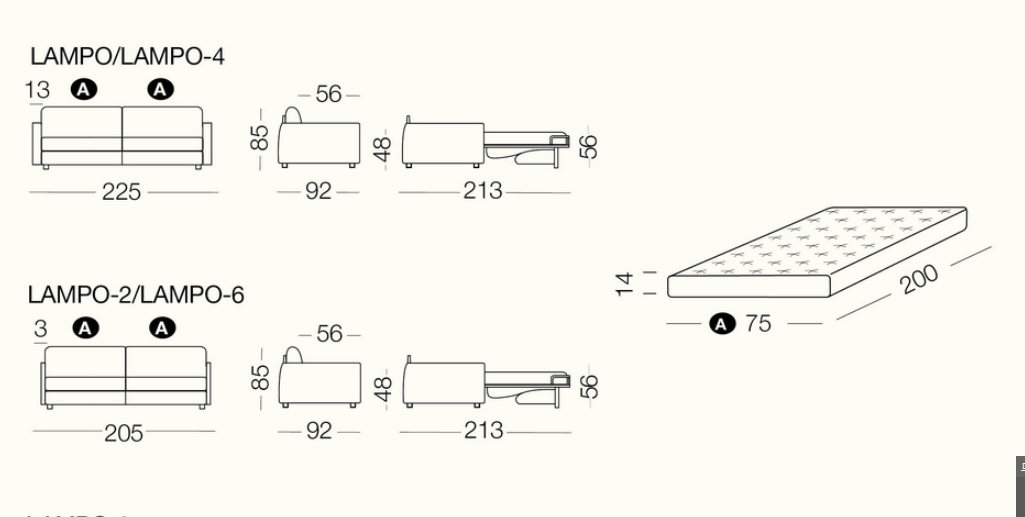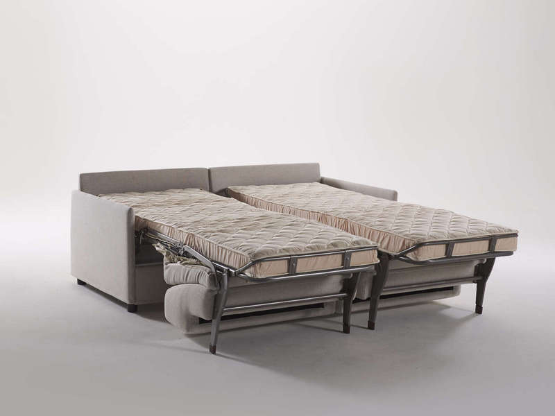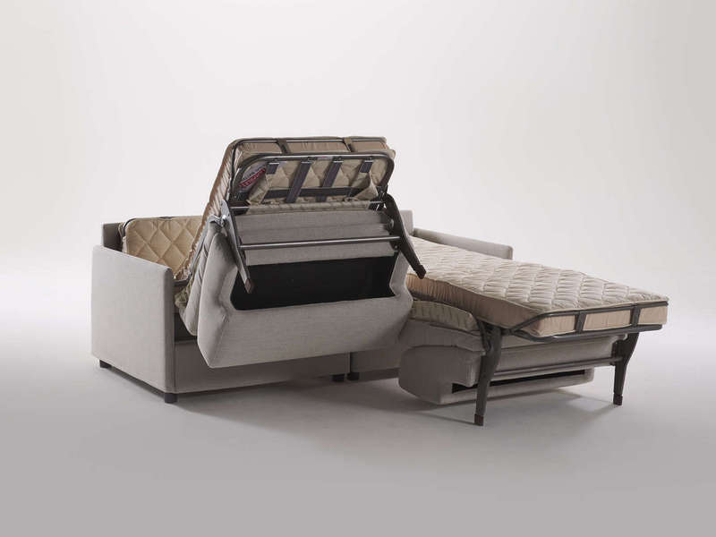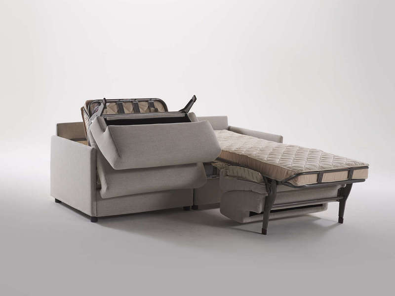 LAMPO is a sofa whose style brings sophistication to a modern setting. The cover is completely removable and washable according to the fabric chosen. By simply rotating the back, without removing any of the cushions, LAMPO converts into a conventional bed with a 200 cm. mattress.