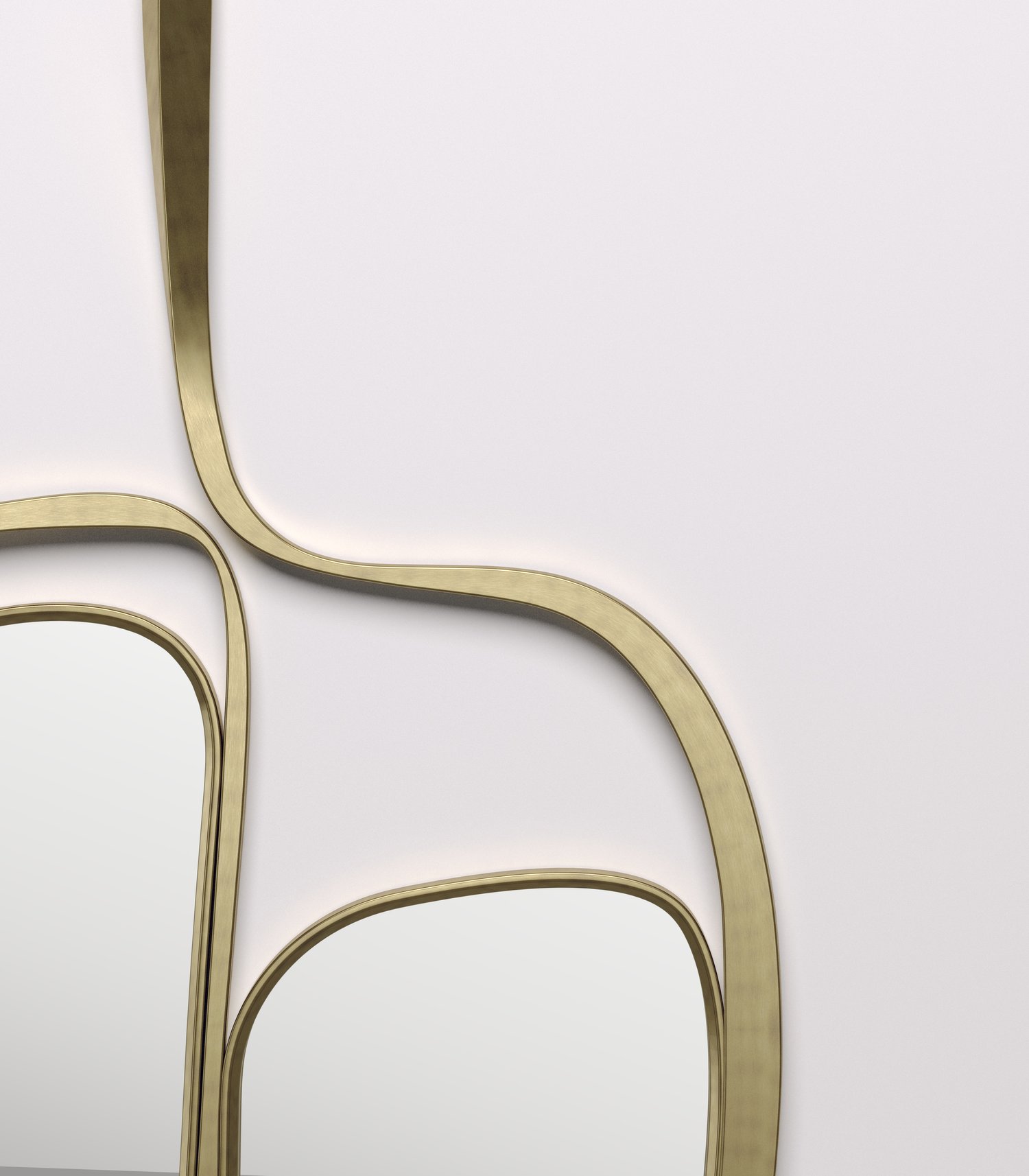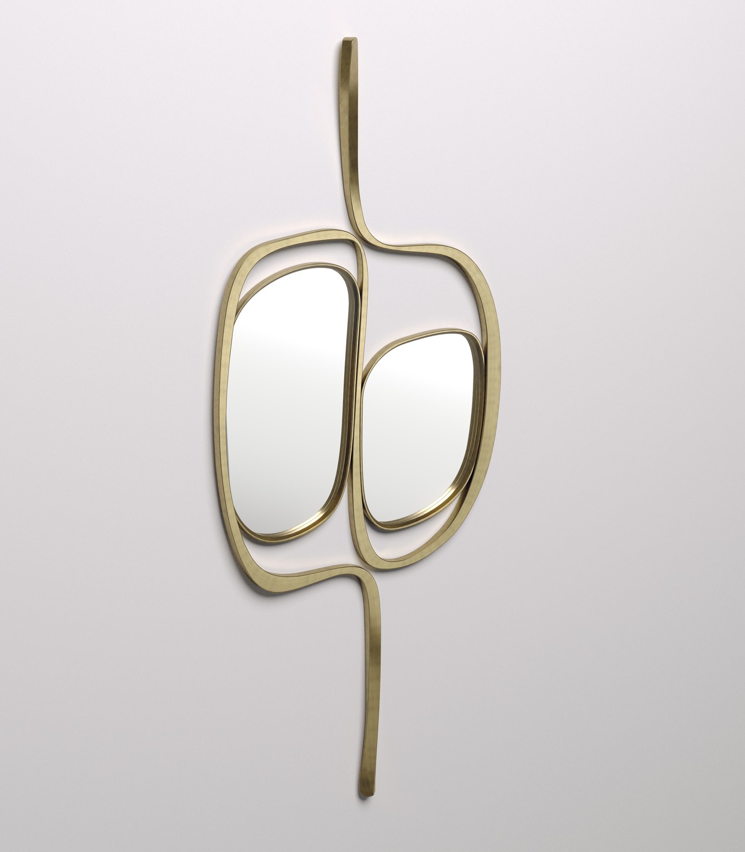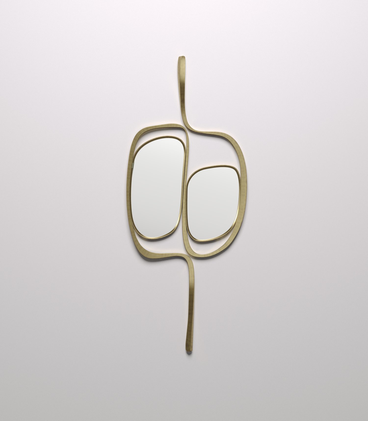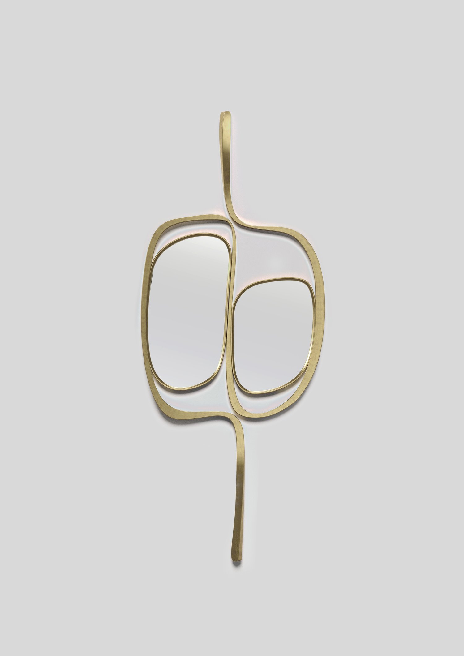 The Ginko mirror by R & Y Augousti is an elegant and versatile piece. The piece is both sculptural and graphic with its organic shape and floating cut out mirror detail. The piece is inlaid completely in bronze patina brass. Part of the Ginko capsule.