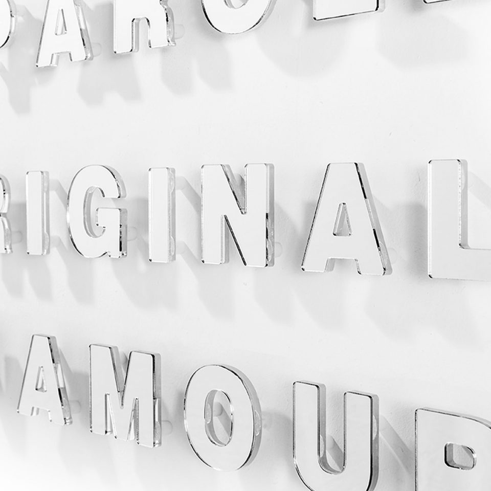 SMS shortmessages_toutcourt gioco con le parole, solo per dire ti amo, questa casa non e' un albergo, pensieri e parole… una sorta di fai-da-te per disegnare, comporre appendiabiti dai contorni e dai significati sempre diversi...come ognuno vuole per scrivere il proprio nome o qualsiasi cosa. Sono letterine singole in metacrilato da fissare al muro.