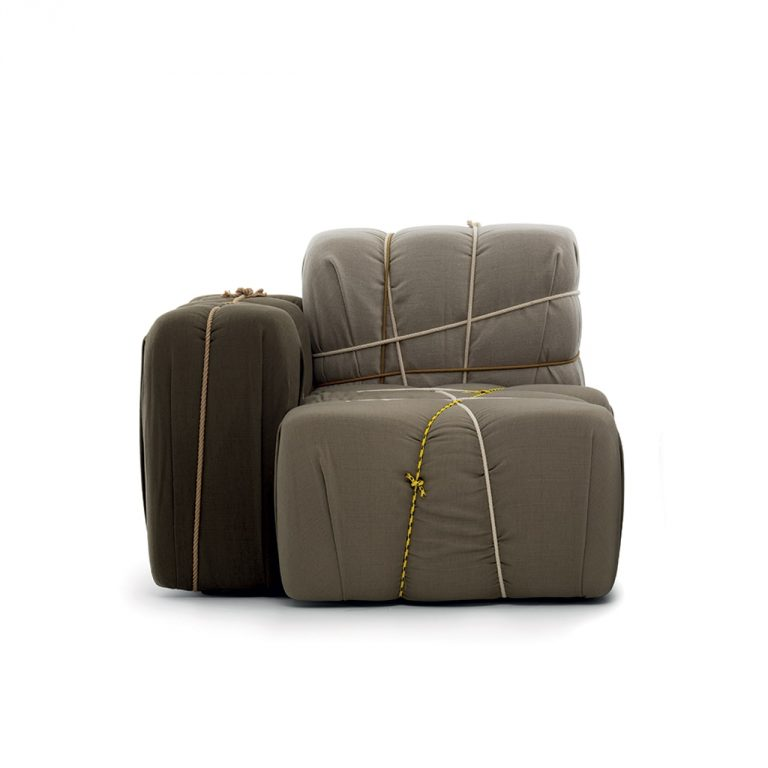 La poltrona 7 Pillows è in massello di faggio con struttura disponibile in versione naturale oppure tinta nei colori come da campionario, completa di 7 cuscini in piuma con rivestimento sfoderabile. Questo progetto nasce con la voglia di creare una poltrona che racconti come è fatta, esaltando l'artigianato, visibile nella struttura completamente scoperta, e comunicando la semplicità con cui è fatta l'imbottitura. L'immediatezza ironica dei cuscini fissati con delle cinghie gioca di contrasto con il fusto in legno, interamente realizzato a mano.