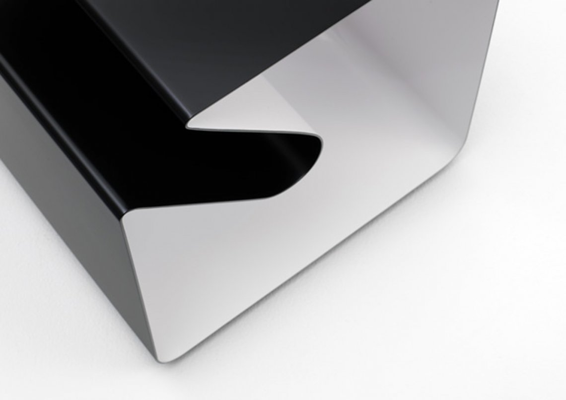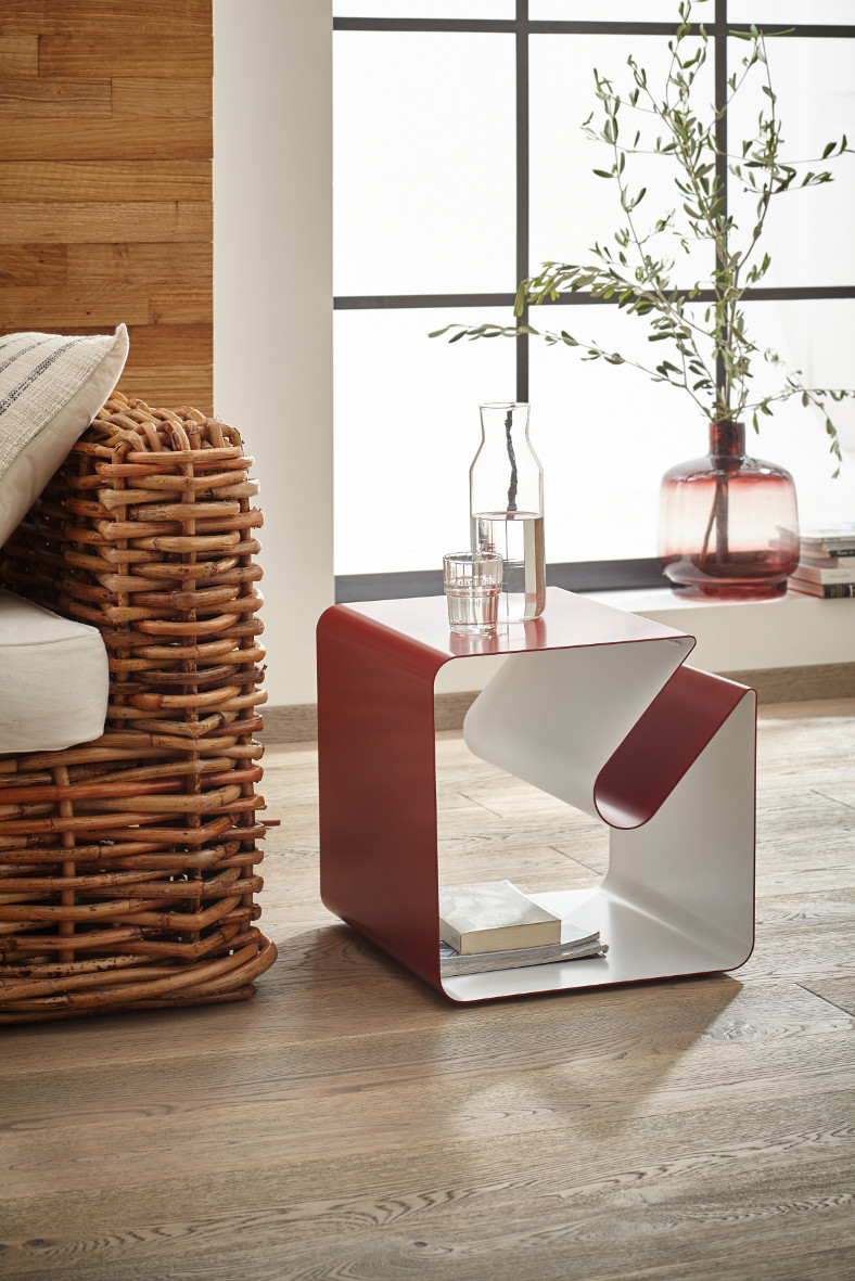 Ein echter Charakterkopf: Der Beistelltisch V 44 ist funktional und stabil, wird mit einer 2,5 Millimeter starken Zeitungsablage aus Metall geschweit und setzt echte Glanzlichter an jedem Platz. Designen Sie Ihre seidenmatte Wunschfarbe aus der gesamten RAL-Palette, gerne auch in einer effektvollen zwei-farbigen Lackierung.