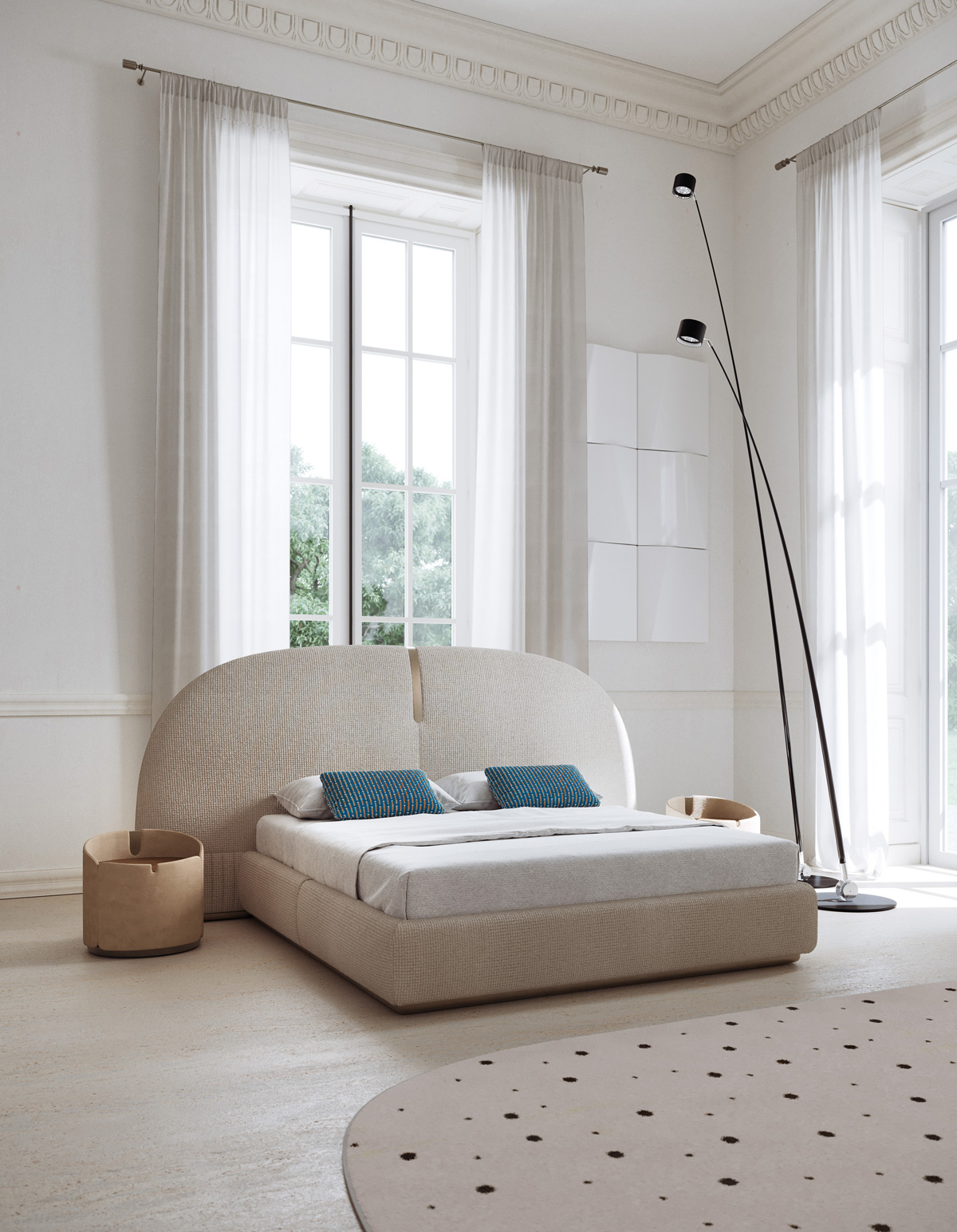 Progettato da BoattoMartino Studio, il letto Suite nasce dal desiderio di creare un prodotto armonioso con forme morbide e contemporanee, unendo linee semplici a dettagli di qualità sartoriale. La testata si distingue per l’accezione scultorea, ma raffinata e morbida, in cui si unisce pelle liscia e cannettata con ottone prezioso.