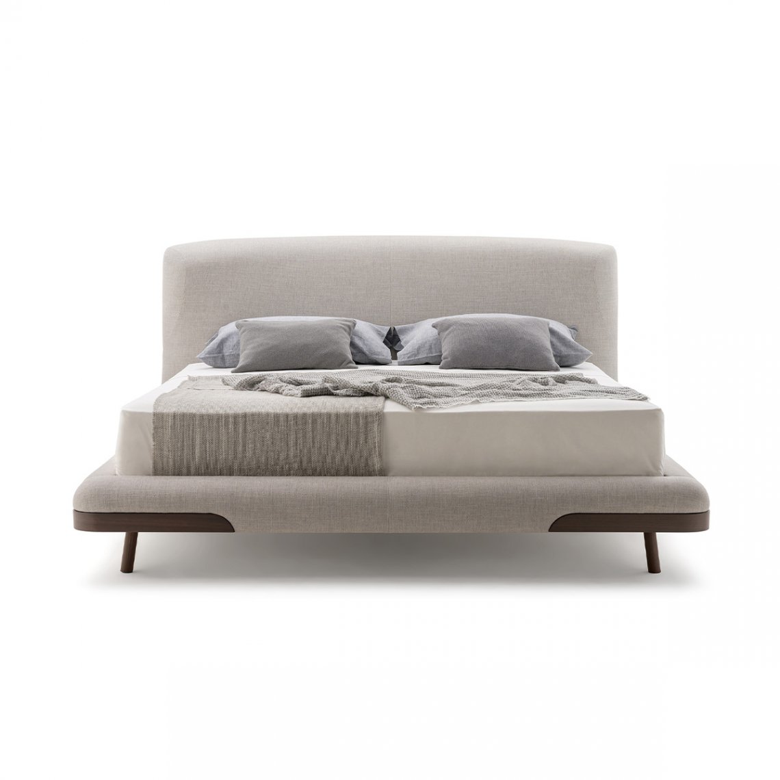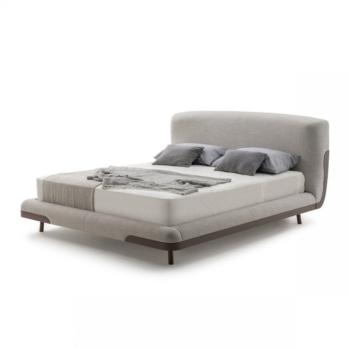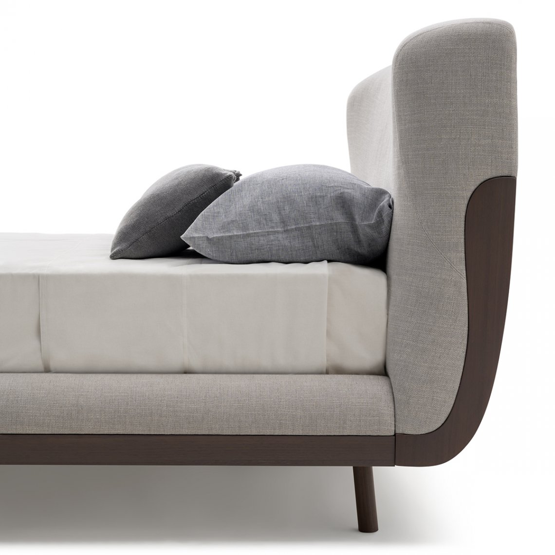 The bed of the Soul collection immediately refers to a feeling of relaxation and well-being. The rounded and accommodating headboard, slightly curved around the mattress, follows the pattern of the seams, giving further softness to the shapes and wooden details that incorporate the bed frame and the headboard. Everything appears as a single and sinuous body. The bed of the Soul collection is available in different finishes as per sample card.