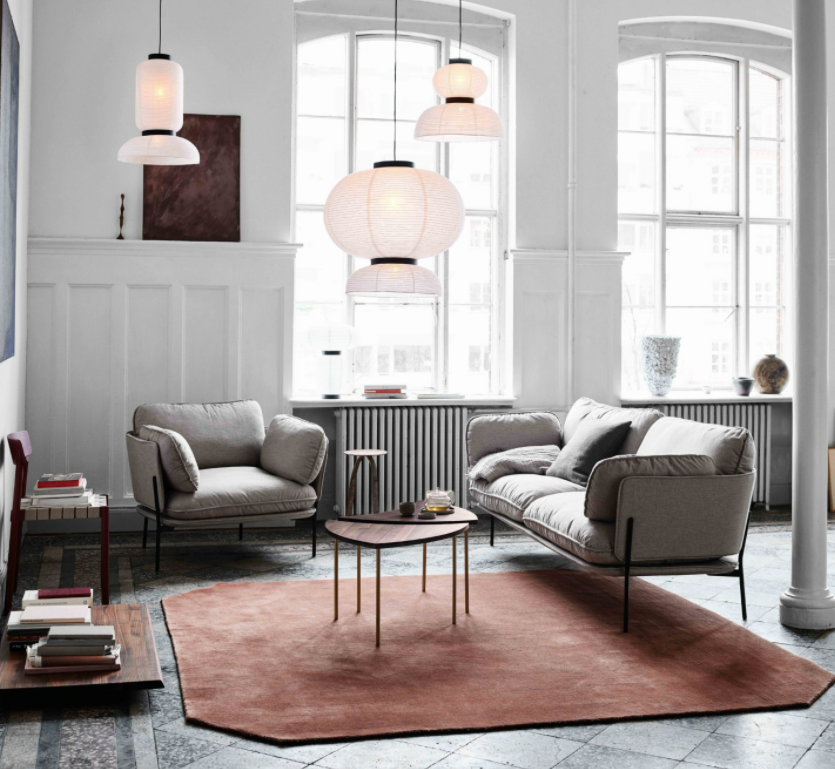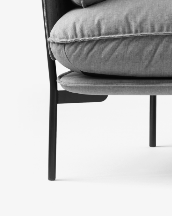 eneer sheets formpressed together towards a solid wood insert. Milled into shape and lacquered. Natural Rattan weaved around a powder coated stainless steel frame.