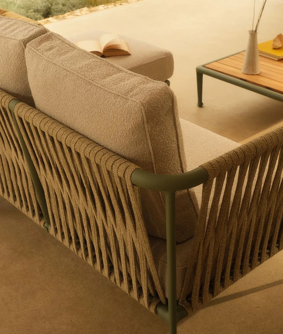 Bimaterica, in alluminio e corda, la collezione Treble si caratterizza per la leggerezza, la purezza delle linee, l’alta performance nell’utilizzo outdoor e il rigore estetico, qualità che la rendono facilmente adattabile a contesti urbani e residenziali. Quattro le finiture della struttura e dell’intreccio: grafite, salvia, syrah e sabbia. Oltre alle sedute modulari è disponibile anche un coffee table rettangolare con solido piano in teak.