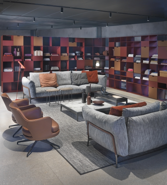 An elegant fold embellishes the cushion upholstery, an intricate craftsmanship detail that traces back to Flexform’s innate tailoring expertise.