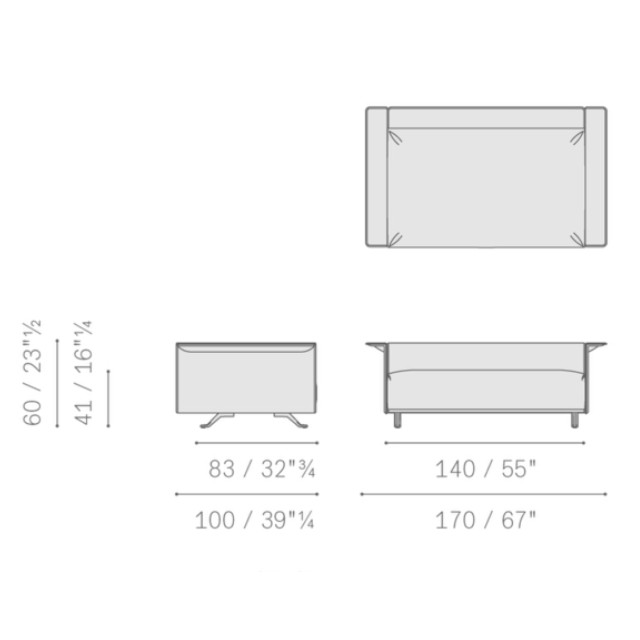 The structure is made of powder-coated lacquered stainless steel, supported by narrow feet. The armrests and backrest, also made of stainless steel, are covered with a handmade rope weave, with a pattern that thickens at the top and bottom. The padded elements are removable and covered with outdoor fabric soft to the touch. The outdoor cushions are designed to allow water to drain away, meaning that the sofas dry quickly and can be supplemented with other optional cushions to give extra support to the backrest.