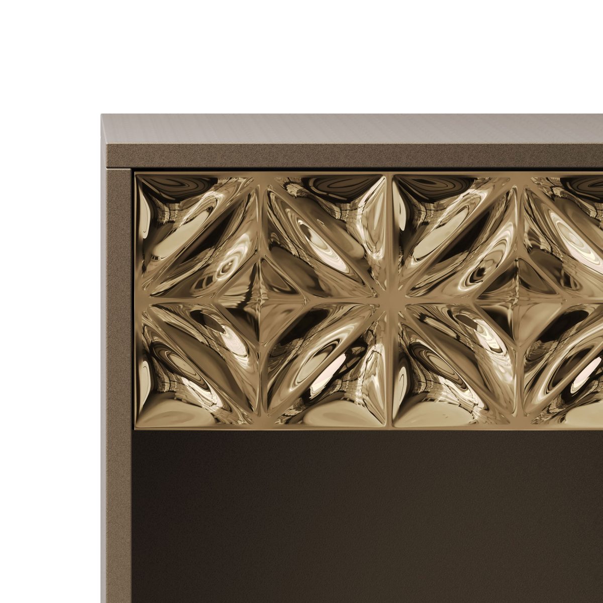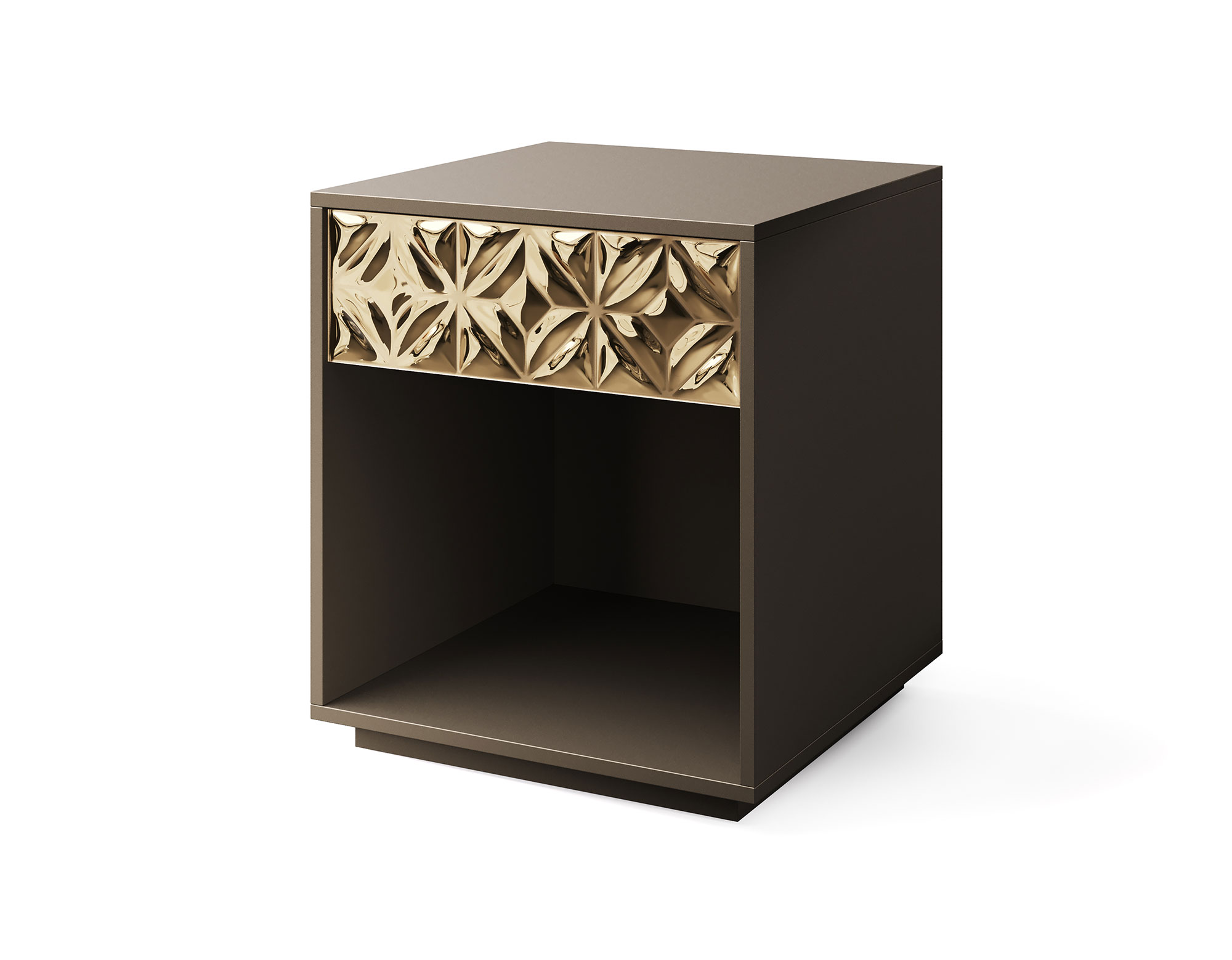 Comodino con struttura in legno laccato bianco opaco, grigio vulcano, oppure Greige Metallizzato.
