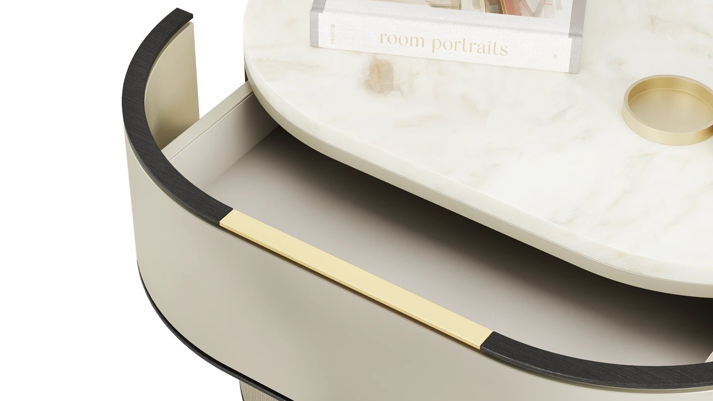 Create perfect symmetry with our YABU Bedside Table. The structure, in two halves, represents balance and gives the overall design a futuristic appeal. With internal draws, it's as practical as it is stunning.