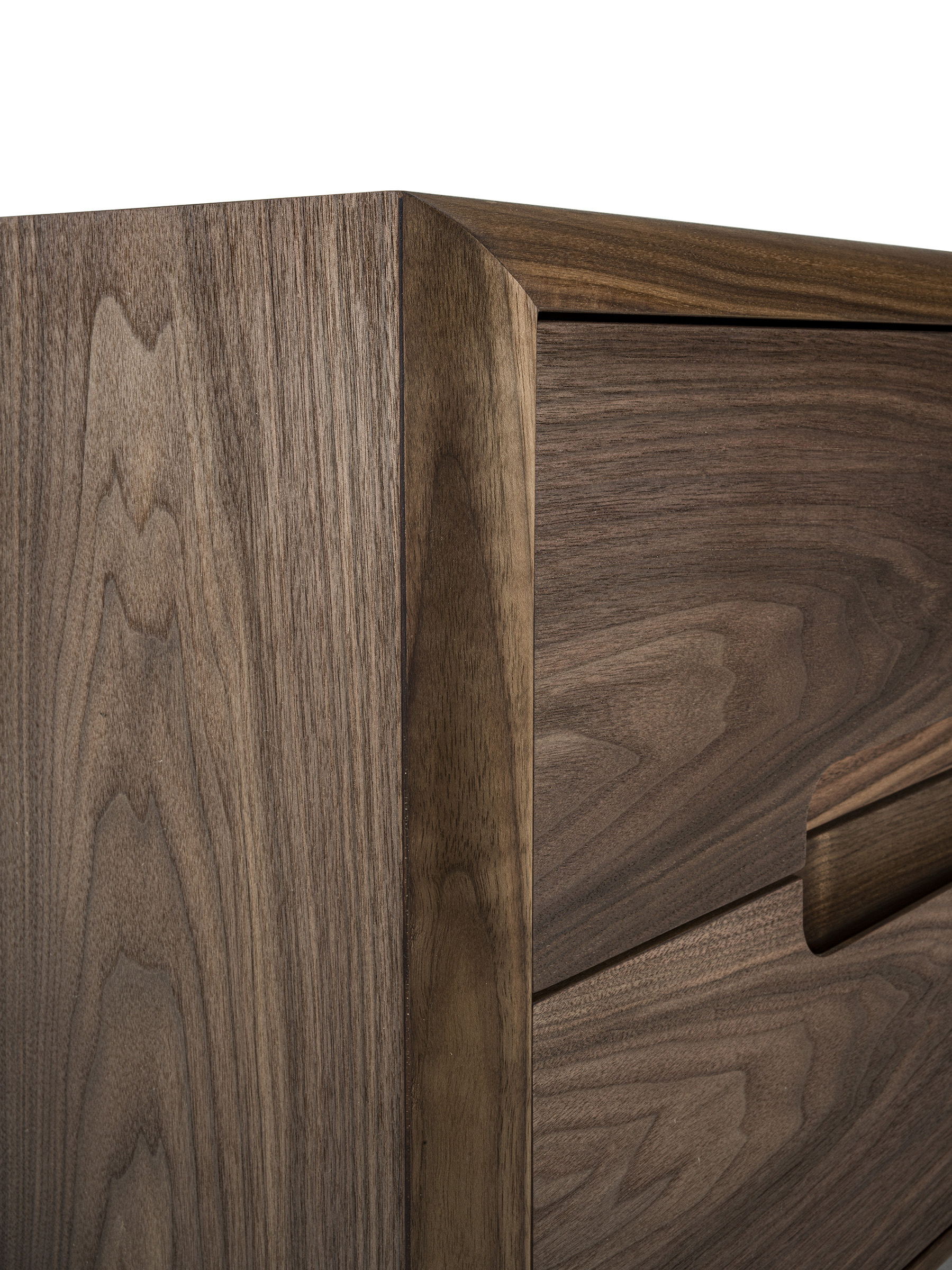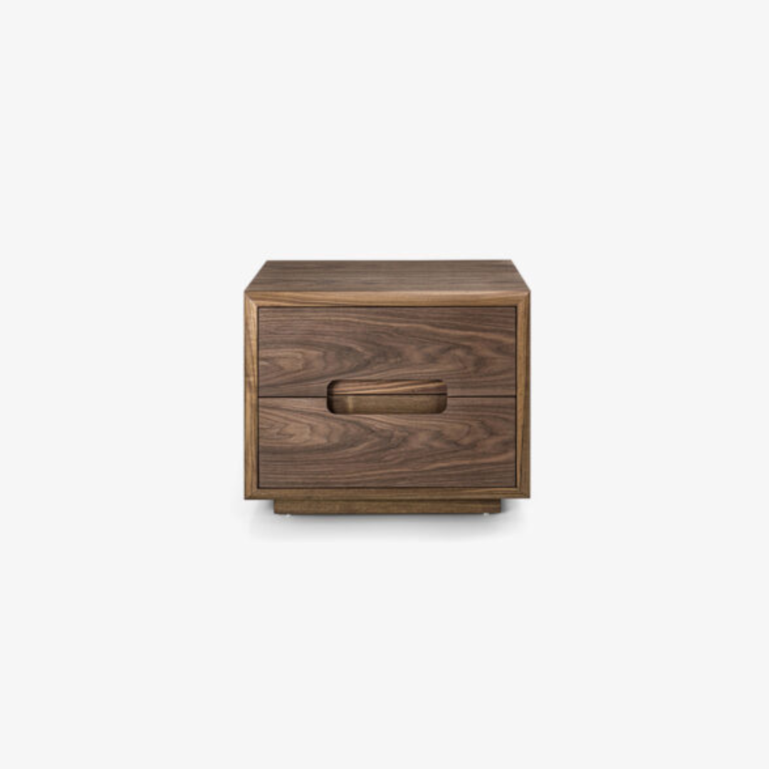 Comodino con struttura in legno massello e listellare, con 2 cassetti con frontali in massello e realizzati con tradizionale incastro a coda di rondine. Apertura del cassetto con maniglia sagomata e incassata.