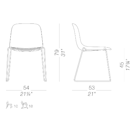 Gambe a slitta, profilo essenziale: la sedia SEELA è impilabile e leggera, e grazie alle tante possibilità di personalizzazione si adatta facilmente a ogni ambiente.