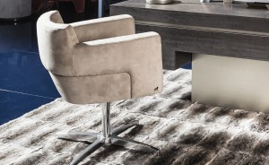 Poltrona bassa girevole imbottita fissa, base inox con piedini. Rivestimento in pelle o MicroNabuk.