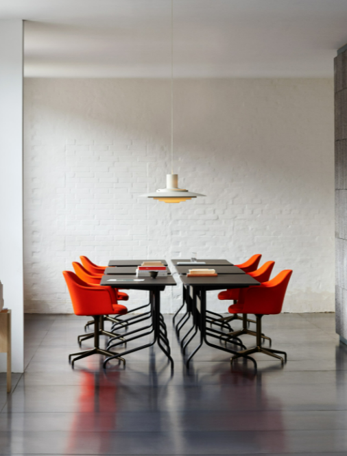 Veneer sheets formpressed together towards a solid wood insert. Milled into shape and lacquered. Natural Rattan weaved around a powder coated stainless steel frame.