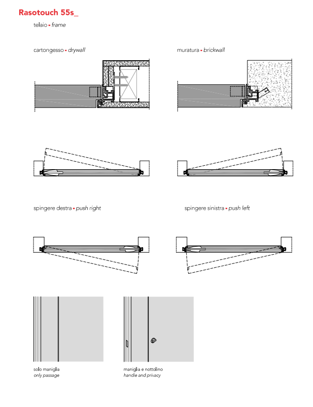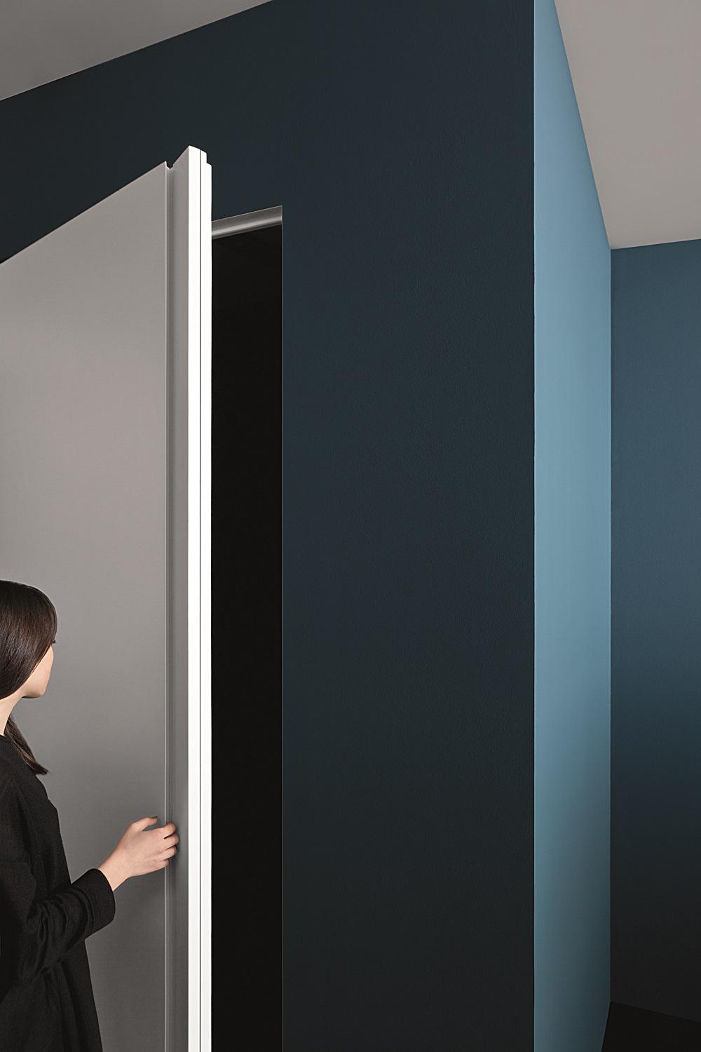 Rasotouch is the most invisible model of the family, specifically created to disappear completely into the surrounding space. The door becomes a true architectural element which contributes to making the space uniform and harmonious. The recessed handle is a touch of perfect elegance: a vertical cut runs along the door in the simplest of forms – a straight line. Design Cairoli & Donzelli.