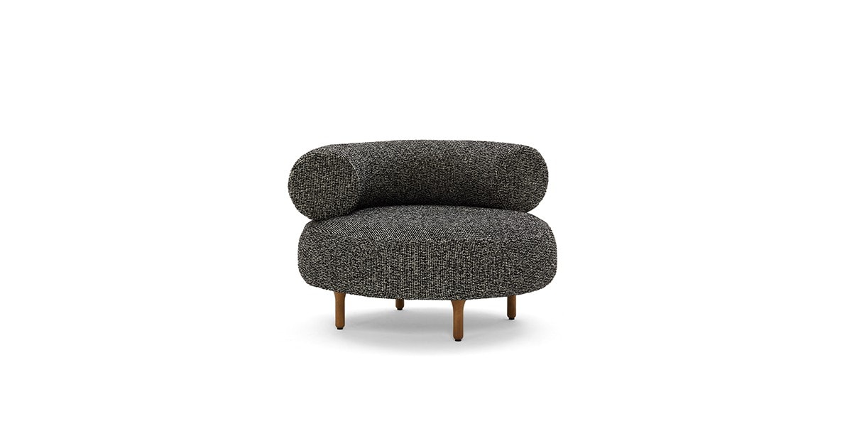 All that changes is the setting: Elisa Ossino steps outside the home and takes the virtues of her interior chair and table collection into the open air. The sofa and armchair share the same fluid forms but upholstered in a durable outdoor polypropylene fabric particularly pleasant to the touch, and featuring Iroko feet. The coffee tables, which can be paired to create new iconographies, are in Granito Nero Assoluto and Quarzite Grigia, treated with Olio Idro.
