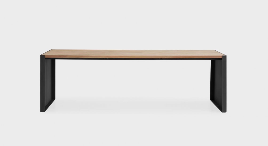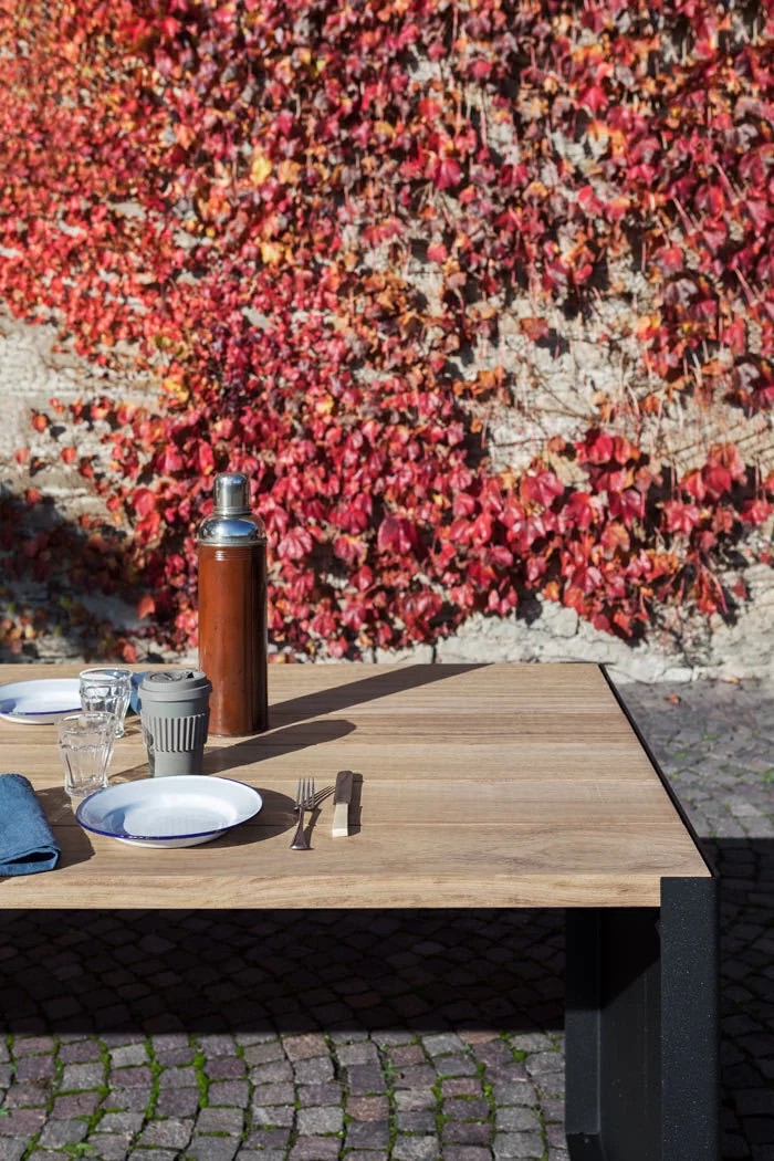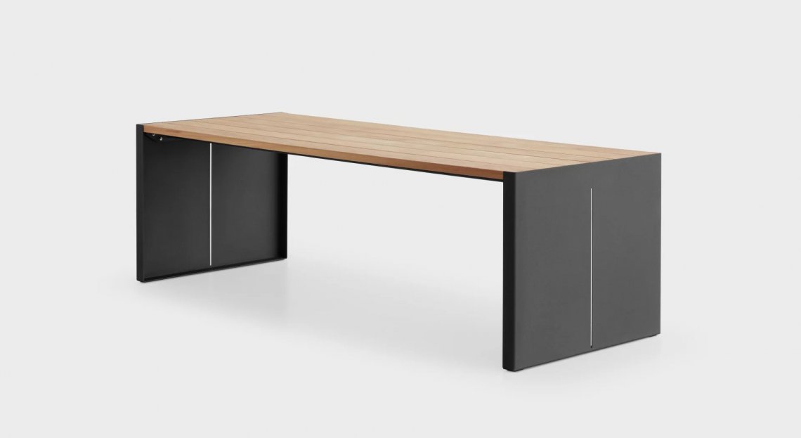 PANCO è l’outdoor della tradizione italiana. Nel disegno antico e contemporaneo, questo magnifico tavolo per esterno poggia su basi in lamiera di acciaio inossidabile verniciato, con taglio dinamico in fiancata. Il piano è in iroko, con venature calde e vissute. Completa il comfort la panca per esterno negli stessi materiali, a scomparsa, per mantenere la bellezza del disegno.