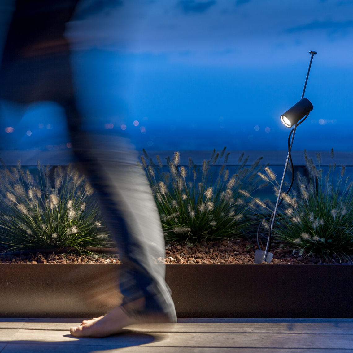A thin stem stuck into the ground and a little adjustable LED projector. For illuminating a flower, a plant or simply to accompany us along a path.