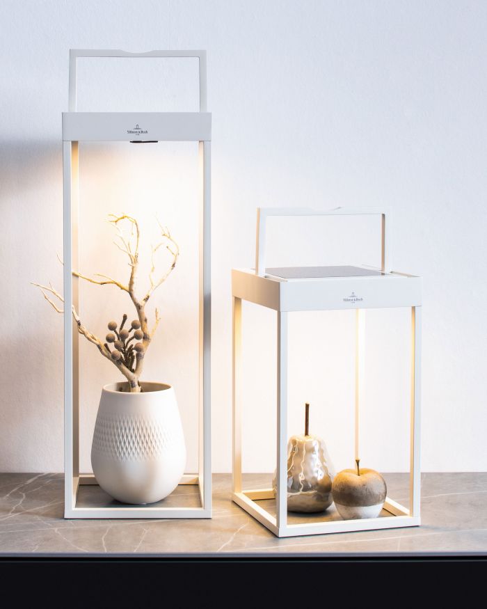 The CANNES rechargeable lantern in the noble colours anthracite and white fits into any environment and is wonderfully adaptable thanks to the dimmer and twilight sensor. Thanks to the built-in solar panel, the luminaire charges itself completely. With the IP65 classification, the openly designed lantern can easily be used outdoors. With the separately available wall mount, there are no limits to the area of application If the lantern does not receive enough sunlight, the CANNES can also be recharged via a USB cable after 48 hours of operation.