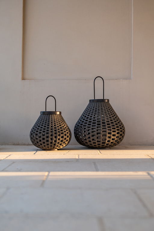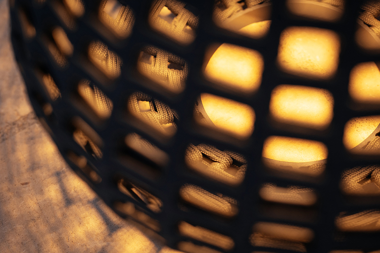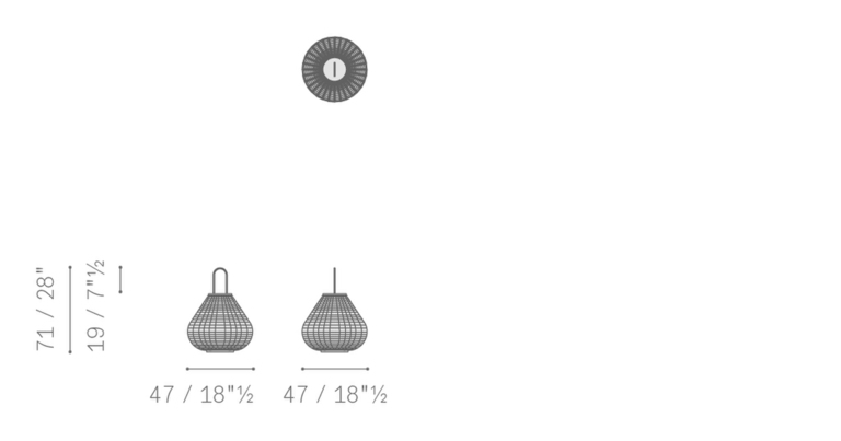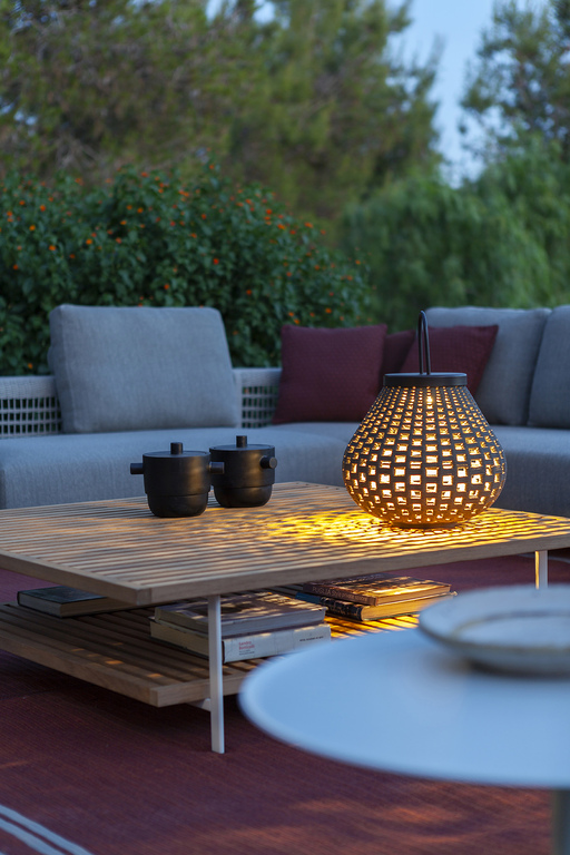 Technology, design and craftsmanship. Sparkler outdoor lamps create an enchanting atmosphere through light sculptures that decorate outdoor spaces of all kinds. Available in three sizes: the large floor lantern, the medium floor lantern and the small table lantern, they are made from a lacquered powder-coated aluminium frame on which a 0.5 mm polypropylene rope is hand-woven. The small lamp can be converted into a floor lamp by means of the arch support, or into an outdoor ceiling lamp by means of the hook and woven rope. The luminaire is a LED with an 8W lithium battery, rechargeable via USB cable. Designed by Kensaku Oshiro, the Sparklers belong to the Boundless Living Outdoor Collections at Poltrona Frau.