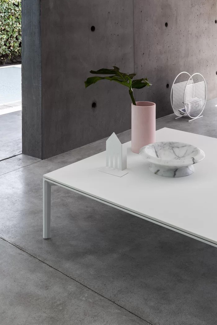 Ha carattere, intensità e leggerezza. Nel suo profilo minimale, ADD tavolino da caffè completa l’eleganza del sistema di sedute ADD e offre il piacere di ritrovarsi outdoor. Il piano è in laminato HPL Fenix? e grazie alle gambe in fusione di alluminio, che formano l’angolo nella versione singola e permettono di unire i telai, le soluzioni compositive soddisfano ogni esigenza.