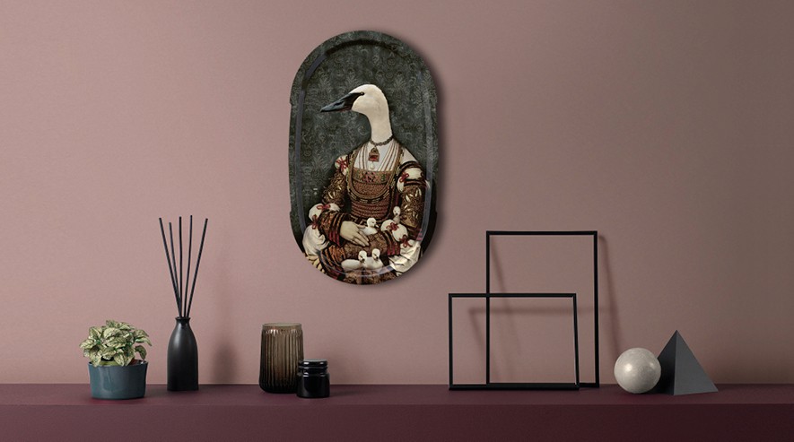 Large trays to be used to serve the guests, they can then be displayed freely on a wall as a pictorial work, a mythological painting