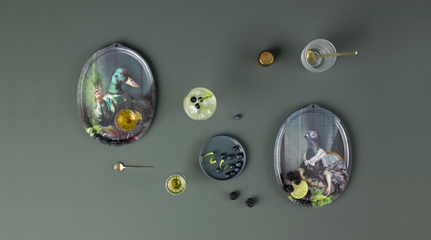 Small trays to be used to serve the guests, they can then be displayed freely on a wall as a pictorial work, a mythological painting.