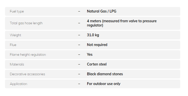 Enjoy cosy nights with our outdoor gas fire pit – Galio Corten. Not only will it extend your evening gatherings in the garden, but it will also bring a touch of luxury to your outdoor space. Thanks to its portable form you will be able to decide whether this outdoor corten fireplace will become an unique space divider or a central point of your garden. Made of highly weather-resistant Corten steel.