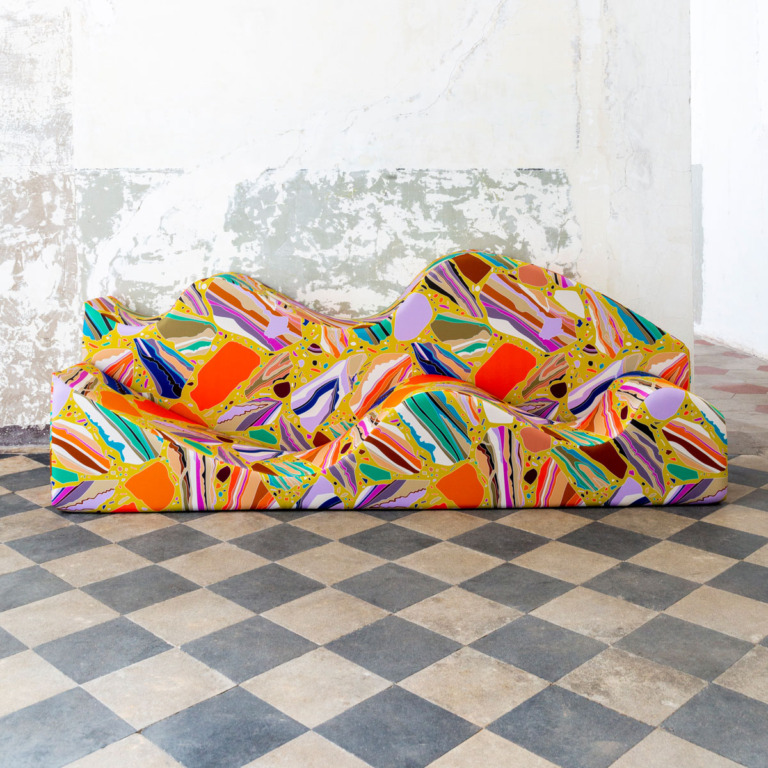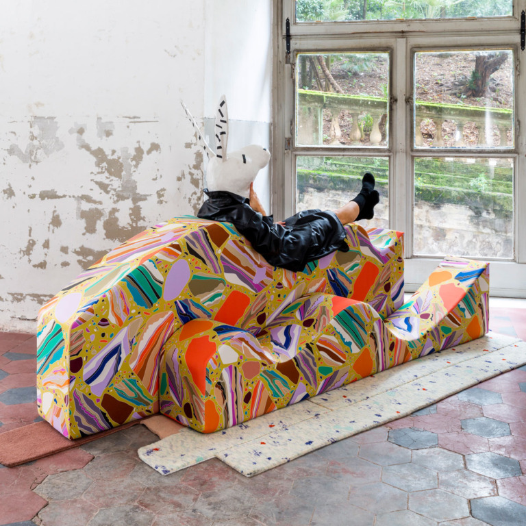 Farfalla, Prato and Cielo are the three rugs inspired by the Farfalla pattern designed by the Archizoom group in 1967 in their quest for an acid contrast between the floral, art nouveau decor and the experimentation that was taking place in Pop Art in those years.