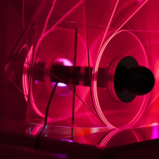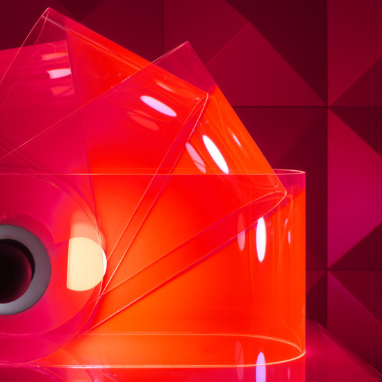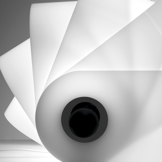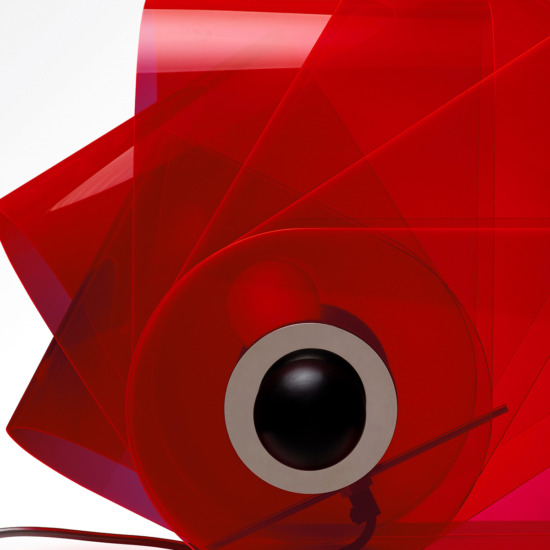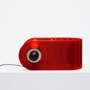 The Gherpe table lamp does not belong to the traditional typologies of lighting fixtures placed on a surface, due to its form like the shell of a marine creature, and to its use of an industrial material like methacrylate. It represents one of the first examples of an interactive luminous object, which thanks to its relationship with the user is capable of changing its tone: from white light for illumination, to colored light to alter the emotional perception of a space.