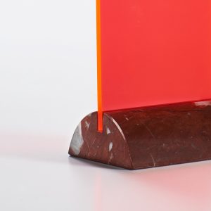 Ofelia is part of a series of small mirrors and a photo holder by Superstudio. The series began with the idea of using scraps from the processing of marble. An operation of bricolage, rather than creation, as the Florence—based group stated at the time. Careful milling of the irregular marble piece makes it become the precious support for a sheet of methacrylate to use as a photo frame. Ofelia, Spera and Vanitas, ahead of their time, represent a project of transformation capable of granting a new, refined aesthetic to industrial scrap.