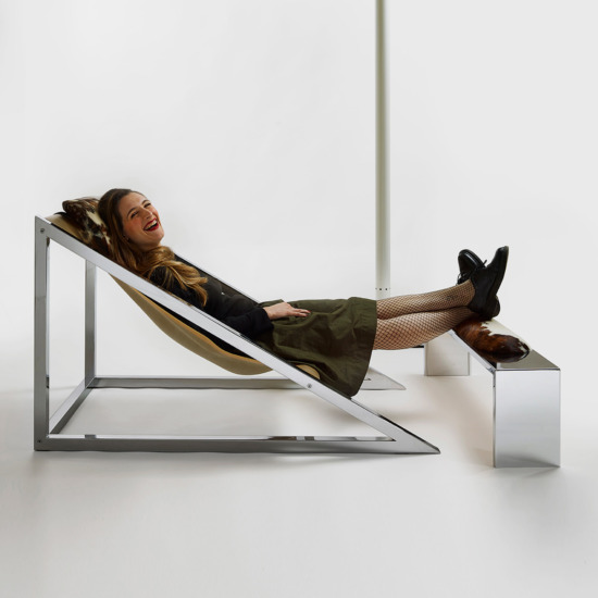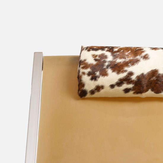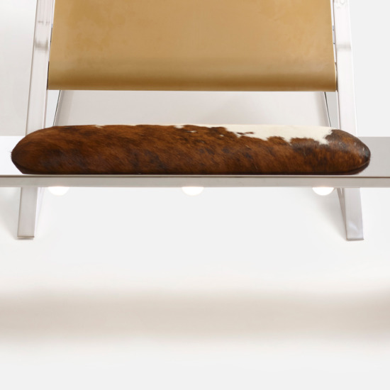 The Mies armchair was born in 1969 from the idea of using a strip of para rubber or India rubber —strong, elastic materials— as a seat. The structure, a triangle in chrome—plated metal, brings out the purity of the silhouette. The headrest and footrest cushions are in ponyskin. The name emphasizes the similarity of the structure to the projects of Mies van der Rohe, as a tribute to the great master who died that same year. With its rigorous geometric design, the Mies armchair sums up the philosophy of Archizoom Associati, leading figures of the Italian Radical movement starting in the second half of the 1960s.