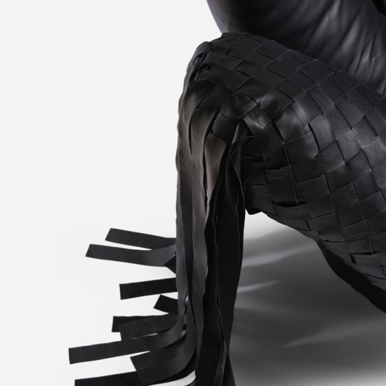 To celebrate the fiftieth anniversary of the armchair Joe designed by DDL Studio, Centro Studi Poltronova has created four special editions for a must—have item which has never gone out of the catalogue. Made of first—rate black leather, Joe Whip is a precious edition with an elaborate braiding which transforms the thumb into a fringe, and by similitude into a whip, preserving all its Pop provocation.