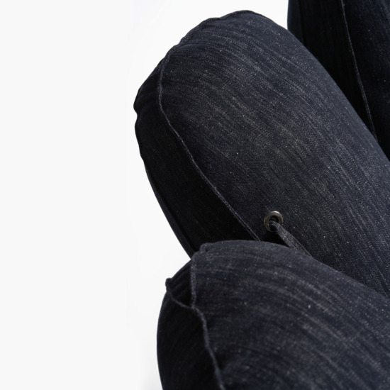 Made of precious cotton and silk denim, in Prussian blue, Joe Jeans pays homage to the material which is most closely identified with the popular American culture referred to in the design. In the 1970s, cult figures like James Dean or Bob Dylan, together with California’s hippy youth, made it the uniform for non-conforming souls, just like Joe.