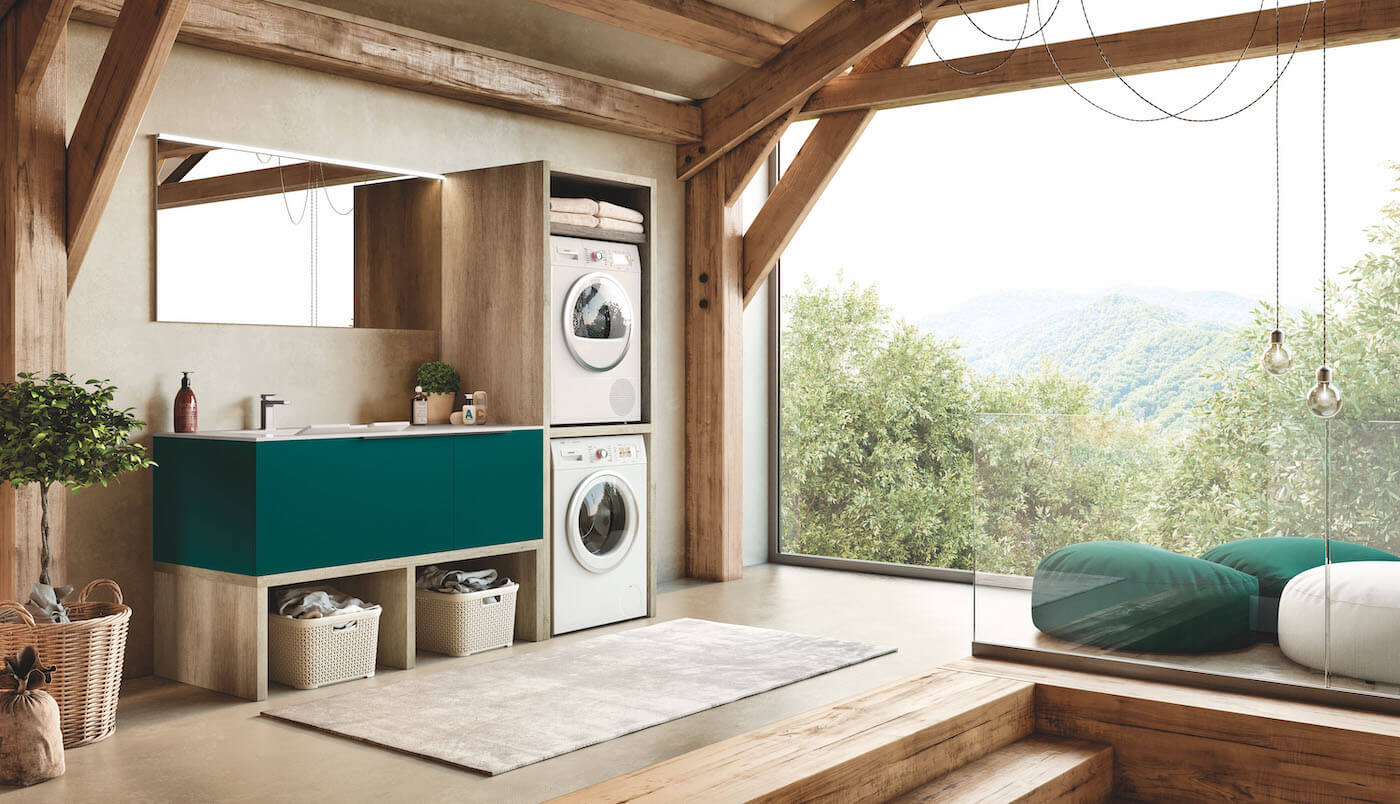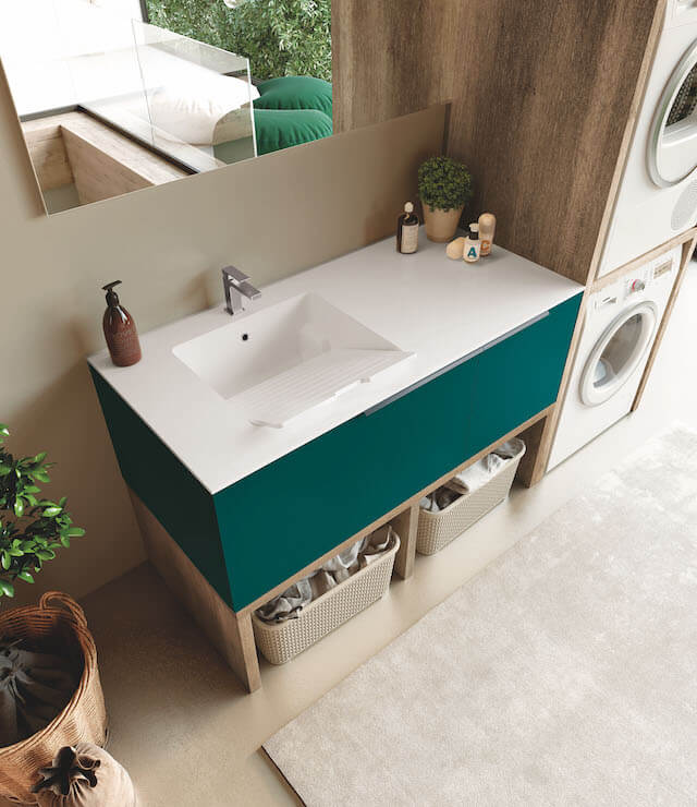An alternative solution that proposes different compartments and spaces for the insertion of the most varied articles. A real workstation for the use of the home laundry. The 67.5 cm deep shoulders of the structure allow even the largest appliances to be housed, even in the case of partial protrusion of these, the functionality of the whole is not compromised.