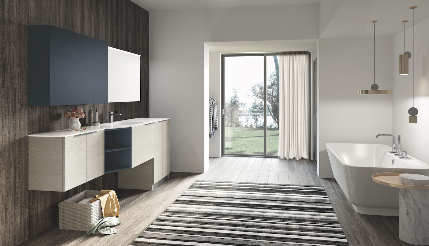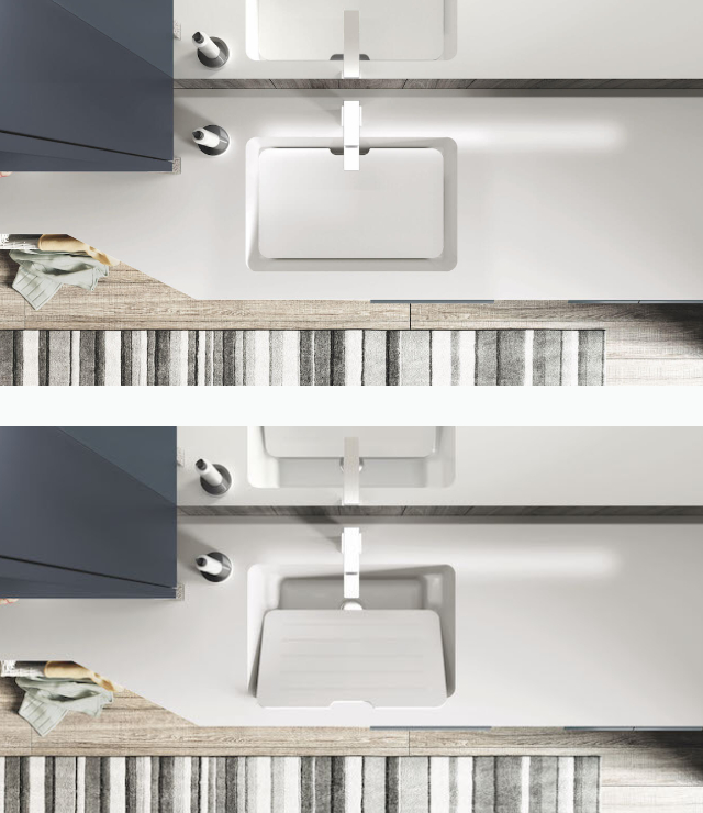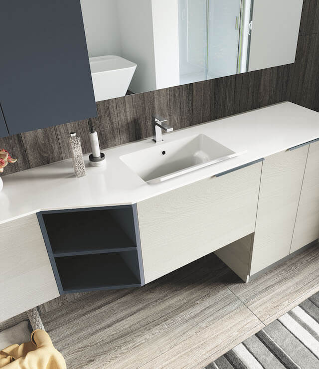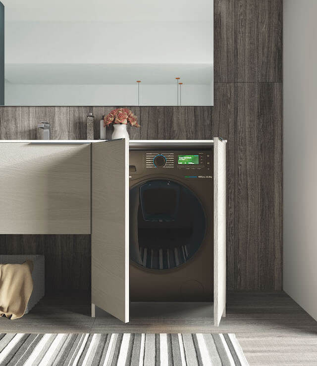 Essential, elegant, functional, as Laundry of Puntotre can be. A composition that houses a washing machine, equipped with a large wash-house, which turns into a normal sink when not used. The base of connection between the different depths, allows you to take advantage of even the narrowest spaces in the bathroom, perhaps allowing the opening of a shower, rather than the door to the bathroom.