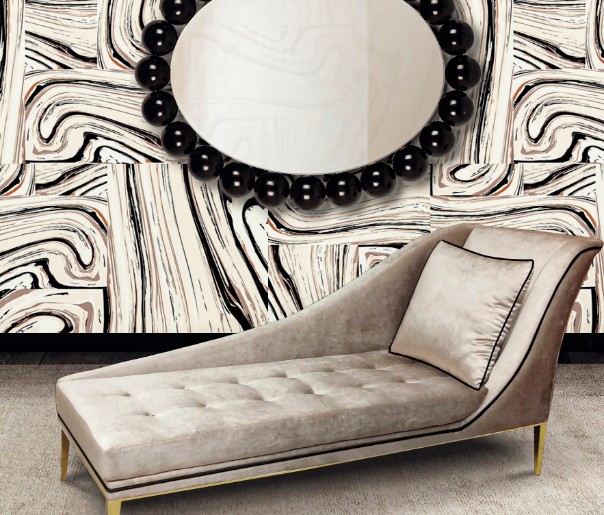 Designed with a seductress in mind the Envy Chaise will ignite your air with luxury design. Fully upholstered in lux upholstery fabric with a tailored cushion. This irresistible chaise is accented with soft button tufting. A chic metal band wraps the body leading to modern and sleek metal feet.