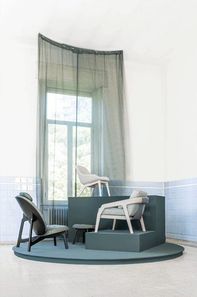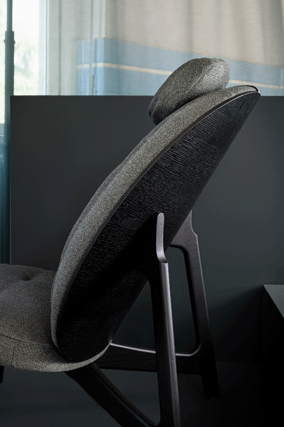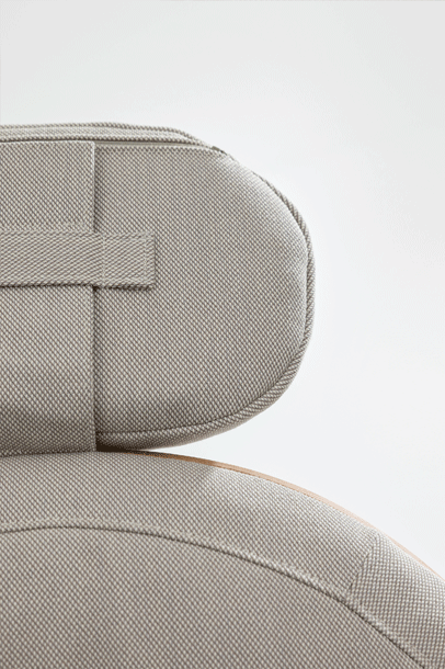 This expressive gesture makes the lounger appear sculptural and is at the same time an invitation to make yourself comfortable – put your feet up on ZENSO POUF. The striking cross-wood frame supports and carries the cantilevered back shell. The adjustable head cushion can be individually adjusted to the respective size. The lounger is characterised by a high level of seating comfort.