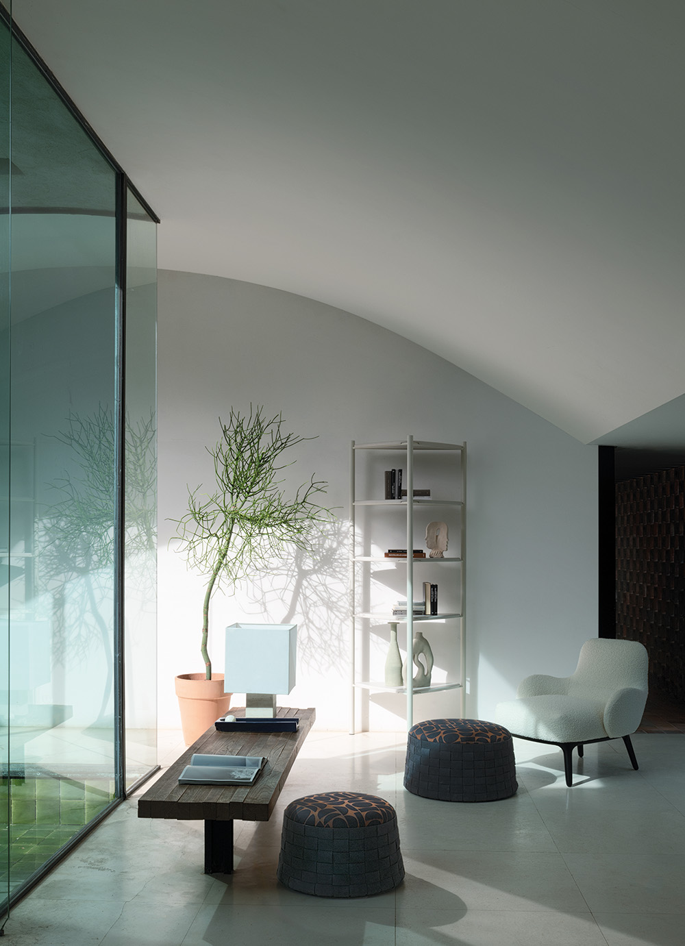 WOODY PLAYS WITH THE TYPICAL SHAPES OF AN ARMCHAIR BY BORROWING THE PURPOSE OF A CHAISE LONGUE, ENHANCING COMFORT IN EVERY DETAIL. ONE CAN PERCEIVE ALL THE VARIOUS MATERIALS, ALMOST LIKE IN A WELL EXECUTED RECIPE. WOODY GIOCA CON LE FORME DELLA POLTRONA REGALANDOLE L’INTENZIONE DI UNA CHAISE LONGUE, RIUSCENDO AD ESALTARE IL RELAX IN OGNI DETTAGLIO. I DIVERSI MATERIALI SI PERCEPISCONO TUTTI, COME IN UNA RICETTA BEN ESEGUITA.