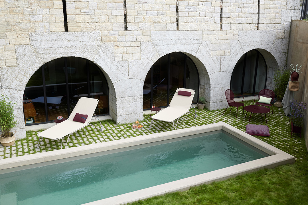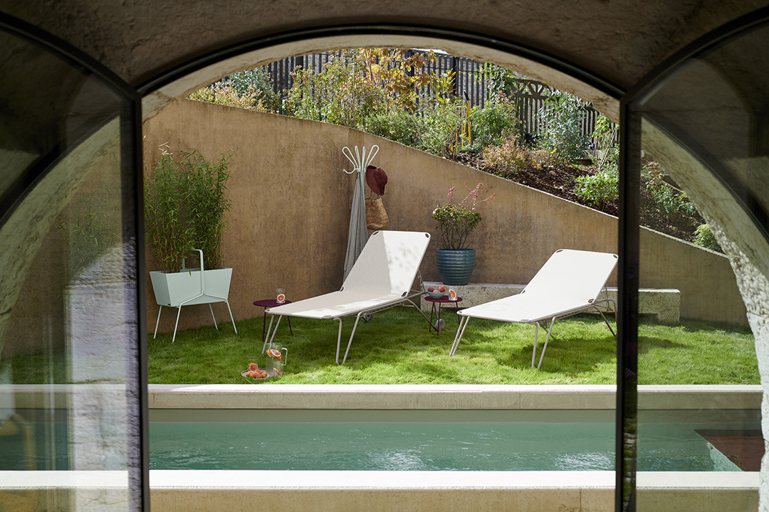 Après un plouf dans l’eau, plongez sur la toile de votre bain de soleil design pour une pause détente bien méritée. Dessiné par Harald Guggenbichler, designer autrichien, il a une allure un brin industrielle que n’aurait pas reniée le Bauhaus… On dirait presque un lit de camp, n’est-ce pas ? Pas étonnant : le parti-pris était à la simplicité !