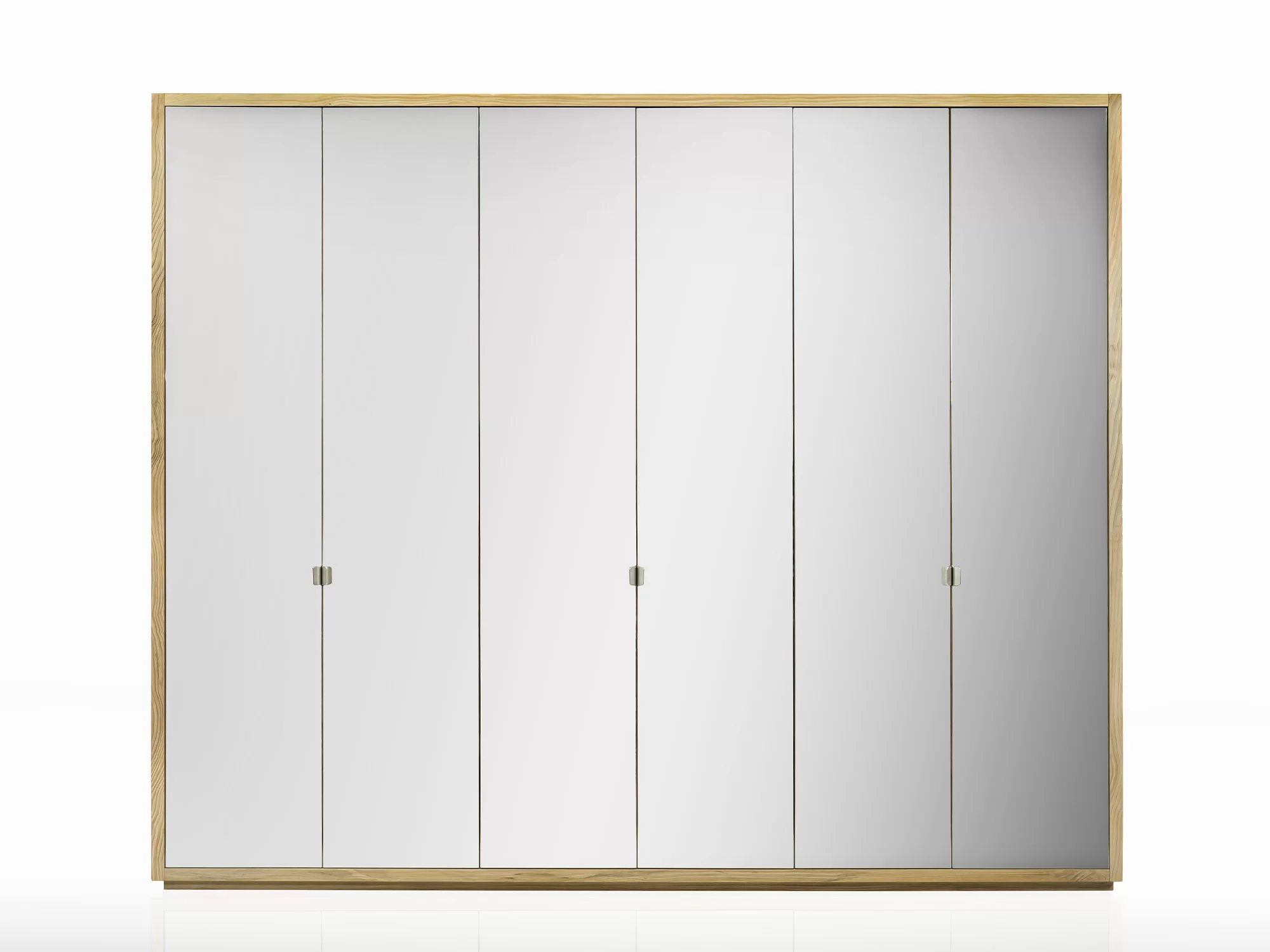 Armadio in legno massello e listellare, caratterizzato da ante battenti a specchio e telaio in legno massello, con interni in legno di cedro profumato, naturale rimedio contro le tarme. Personalizzabile con l’inserimento di appendiabiti, ripiani, cassettiere in legno massello con tradizionale incastro a coda di rondine e accessori vari, propone un’organizzazione funzionale e componibile dei vari elementi sulla base delle esigenze contenitive e delle dimensioni richieste.