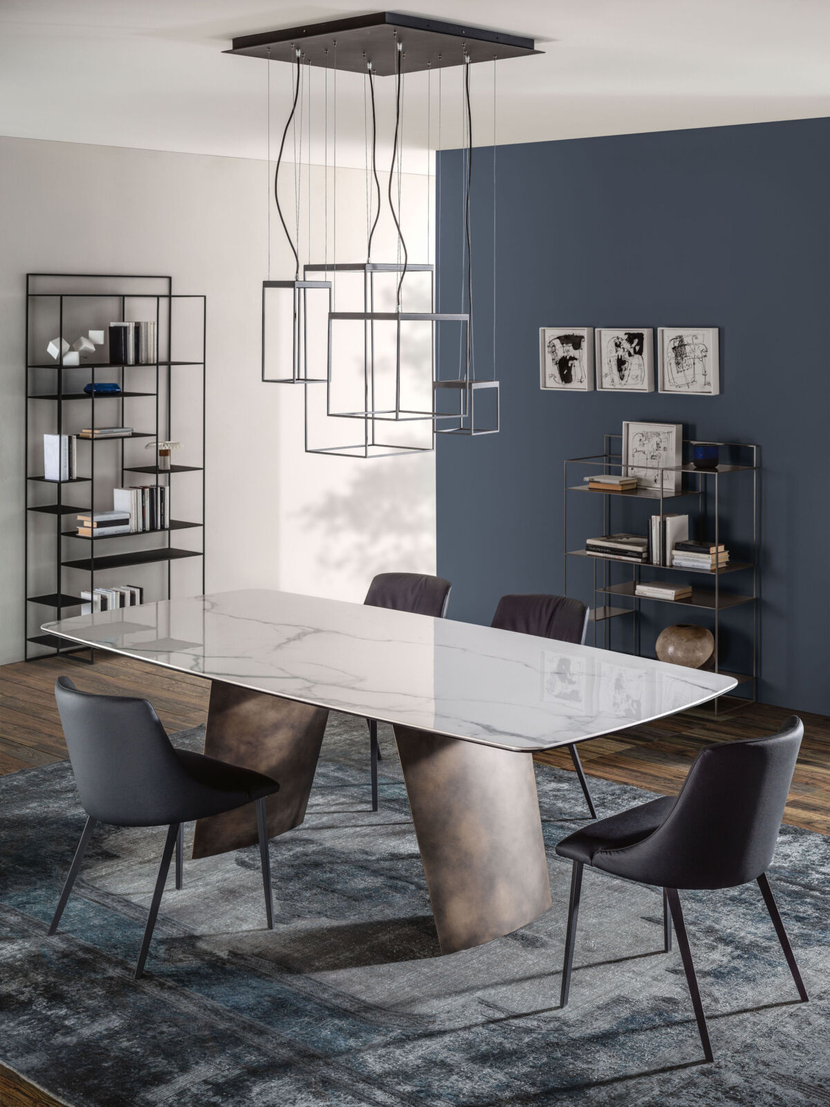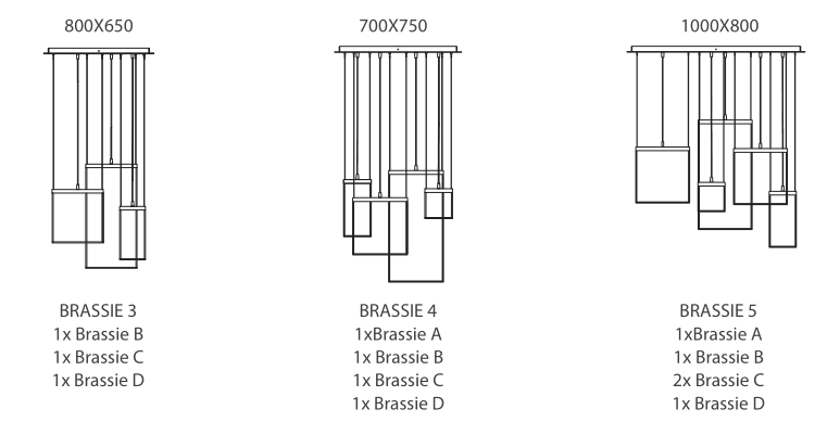 Chandelier in painted metal with LED lighting plate. Steel supporting cables, standard cable length 1,2 mt. included. Electric cable available in silver or black finishing. Brassie is available in 4 sizes. Each pendant lamp can be used alone or in groups of 3/ 4 / 5
